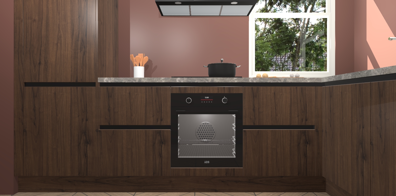 Wat maakt deze keuken zo bijzonder? Ten eerste geeft het houten werkblad uw ruimte een onmiskenbaar klassieke uitstraling. De natuurlijke afwerking roept warmte en elegantie op die nooit uit de mode zullen raken. Bovendien is het gemakkelijk schoon te houden en te onderhouden, zodat je er jarenlang plezier van kunt hebben. Als u op zoek bent naar extra gemak in uw keuken, dan heeft u bij het plaatsen van een bestelling bij ons ook de optie om uw toestellen te upgraden naar AEG-modellen - zo haalt u moderne innovatie van topmerken in apparatentechnologie rechtstreeks in huis.