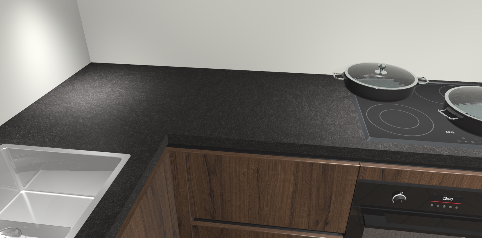 - Bij een hoekwerkblad zijn de hoeken in gevreesd en op maat gemaakt