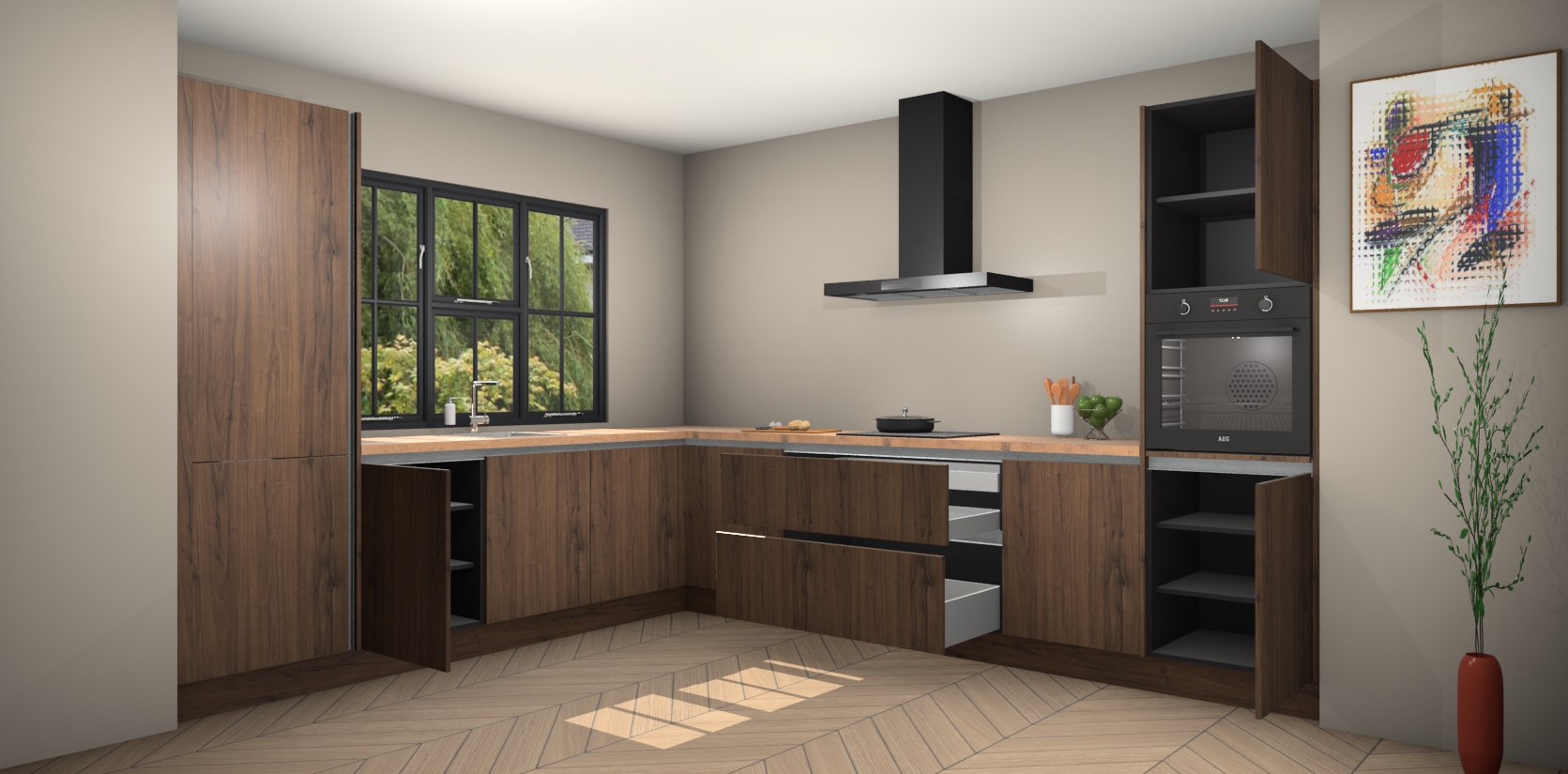 In deze box zijn alle kleuren verzameld van de deuren en werkbladen. Vraag de gratis kleurenbox aan en kijk thuis rustig verder!