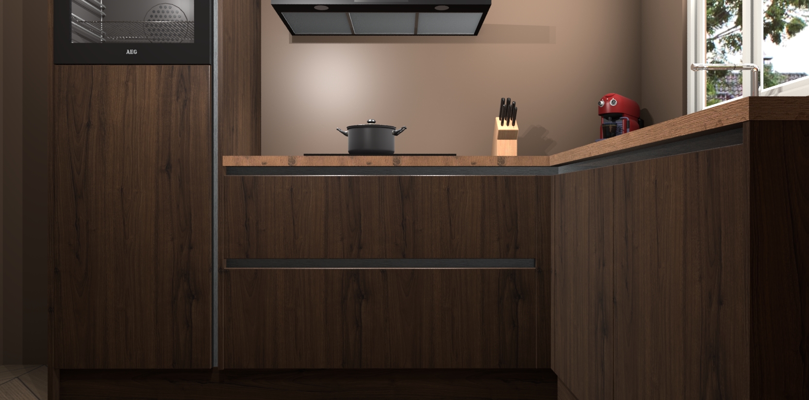 Dit model biedt u voldoende opbergruimte en vijf ingebouwde apparaten: een oven, inductiekookplaat, afzuigkap, vaatwasser en koelkast. Deze apparaten kunnen gemakkelijk worden geüpgrade naar AEG nadat u besteld heeft. De verschillende laden en kastjes bevatten softclose-deuren waardoor ze gezellig dichtvallen met een geruststellend helemaal geruisloos geluid. En dat is nog niet alles! We garanderen ook dat de prijs altijd laag blijft - dus haal nu uw Noten greeploze keuken Victoria terwijl het kan.