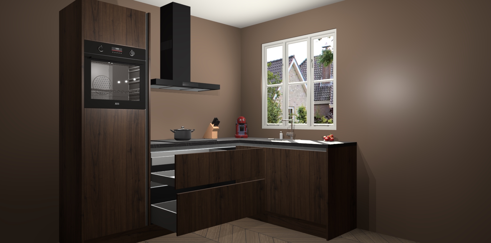 Bestellen was nog nooit zo makkelijk en we leveren met slechts 7 weken; zodra de keuken arriveert staan de kasten voor gemonteerd klaar om er alles aan te doen dat u hem gemakkelijk zelf kunt installeren! Eén ding is zeker: met de Noten greeploze keuken Victoria slaagt u erin modischer, modernere keukens uit te rusten die tientallen jaren meegaan! Haal snel uw Noten greeploze keuken Victoria - of u nu net begint of al 'levenservaring' hebt in de keukendroomloopbaan - want dit topmodel van onze collectie wilt u absoluut niet missen.