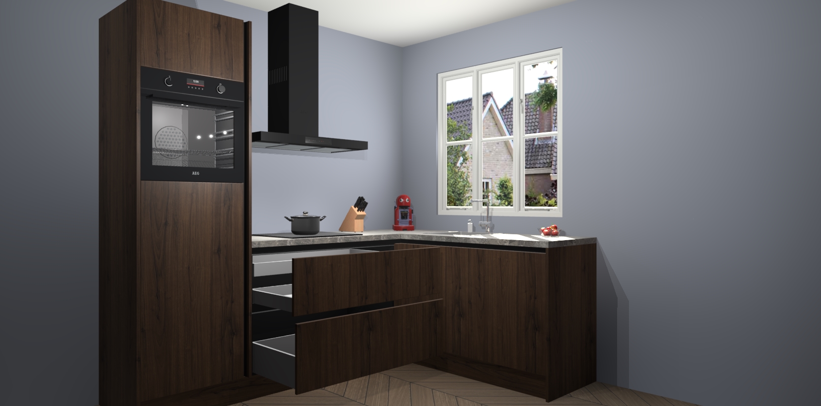 Dit model biedt u voldoende opbergruimte en vijf ingebouwde apparaten: een oven, inductiekookplaat, afzuigkap, vaatwasser en koelkast. Deze apparaten kunnen gemakkelijk worden geüpgrade naar AEG nadat u besteld heeft. De verschillende laden en kastjes bevatten softclose-deuren waardoor ze gezellig dichtvallen met een geruststellend helemaal geruisloos geluid. En dat is nog niet alles! We garanderen ook dat de prijs altijd laag blijft - dus haal nu uw Noten greeploze keuken Victoria terwijl het kan.