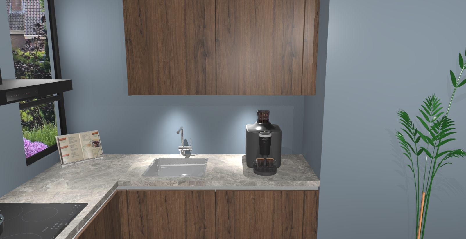 - De spoelbak is nog niet in gevreesd. Dit dient tijdens het werk gedaan te worden
