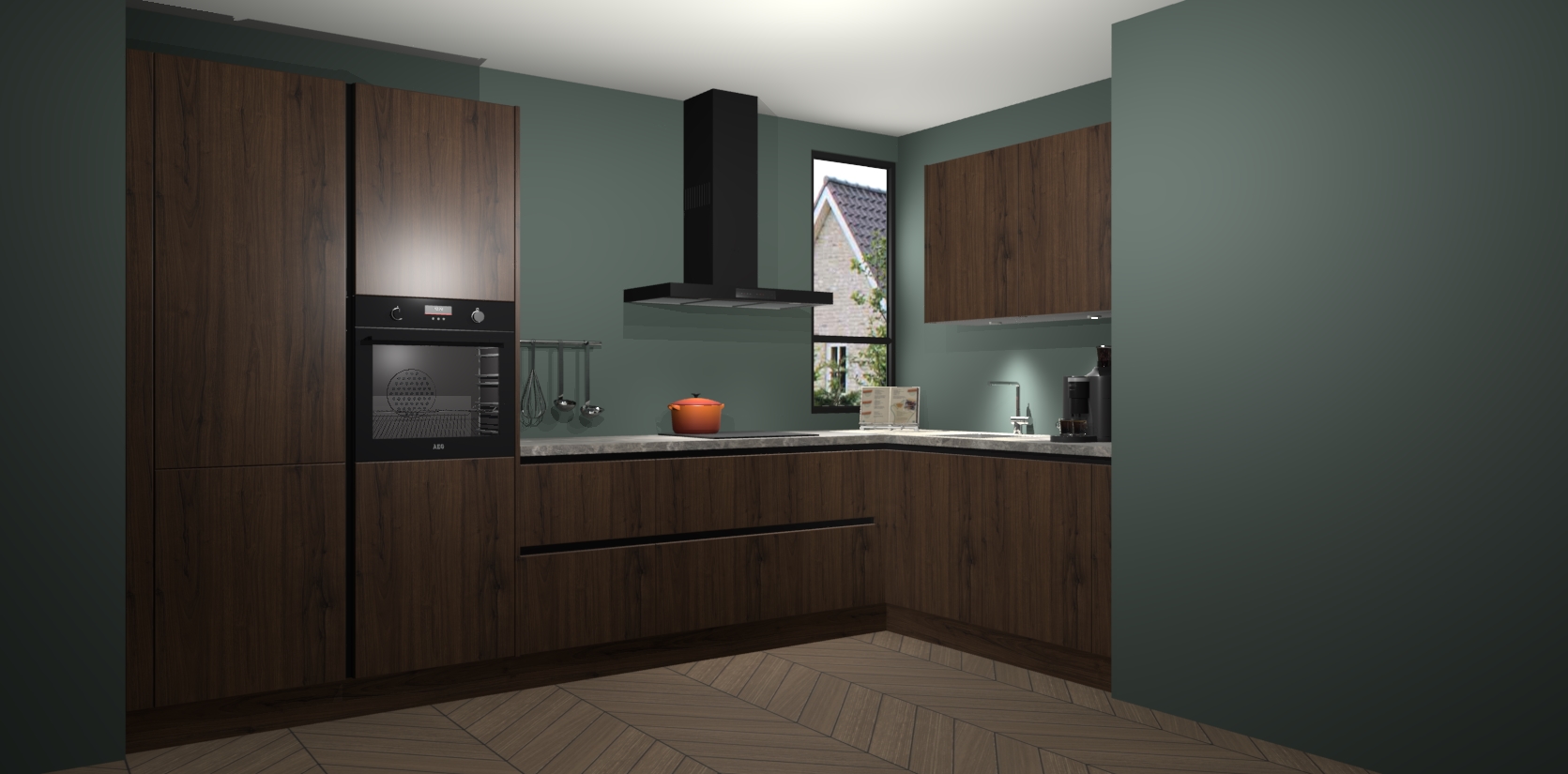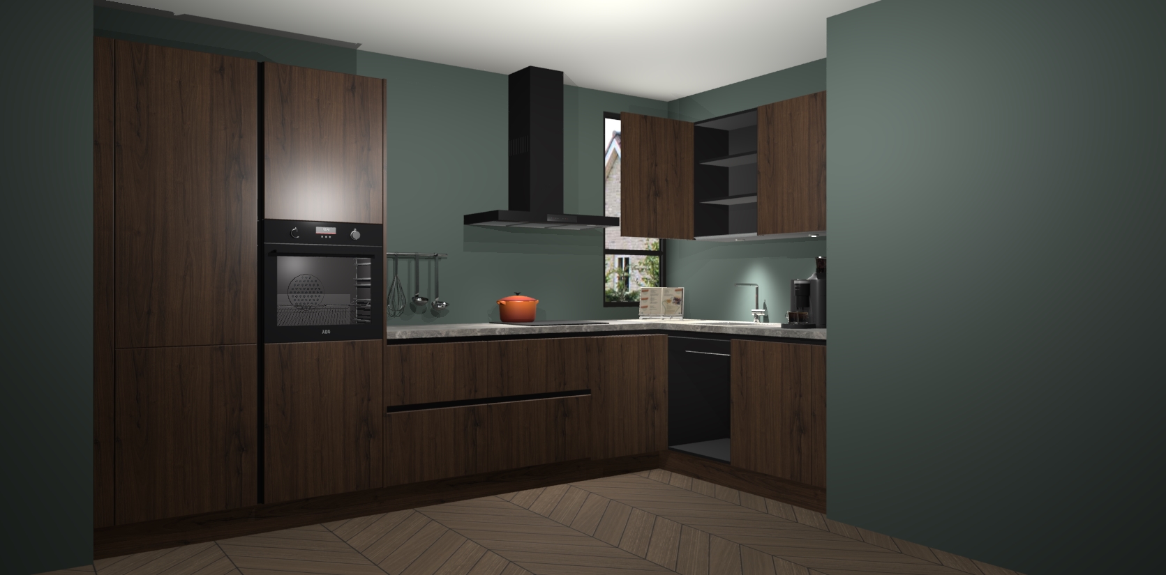 Welkom in uw nieuwe moderne keuken! Laat ons u voorstellen aan de noten greeploze keuken Vlaanderen. Deze prachtige hoekkeuken straalt exclusiviteit en luxe uit als geen ander. Het strakke design, de tijdloze kleuren en het greeploze model maken van deze keuken een moderne klassieker. En met voldoende opbergruimte heeft deze keuken echt voor ieder wat wils.