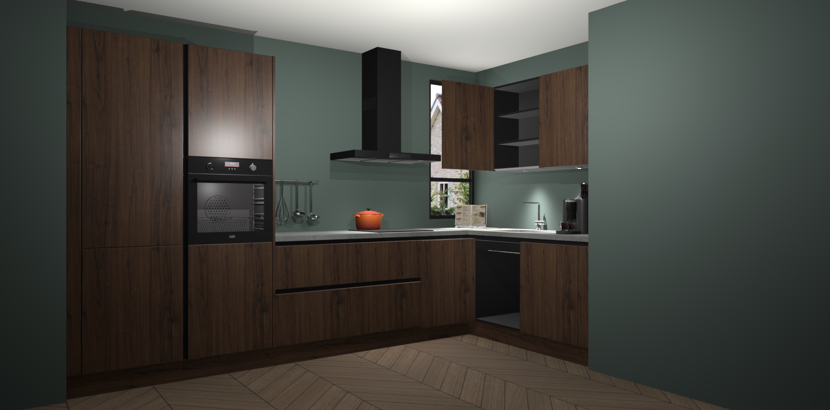Welkom in uw nieuwe moderne keuken! Laat ons u voorstellen aan de noten greeploze keuken Vlaanderen. Deze prachtige hoekkeuken straalt exclusiviteit en luxe uit als geen ander. Het strakke design, de tijdloze kleuren en het greeploze model maken van deze keuken een moderne klassieker. En met voldoende opbergruimte heeft deze keuken echt voor ieder wat wils.