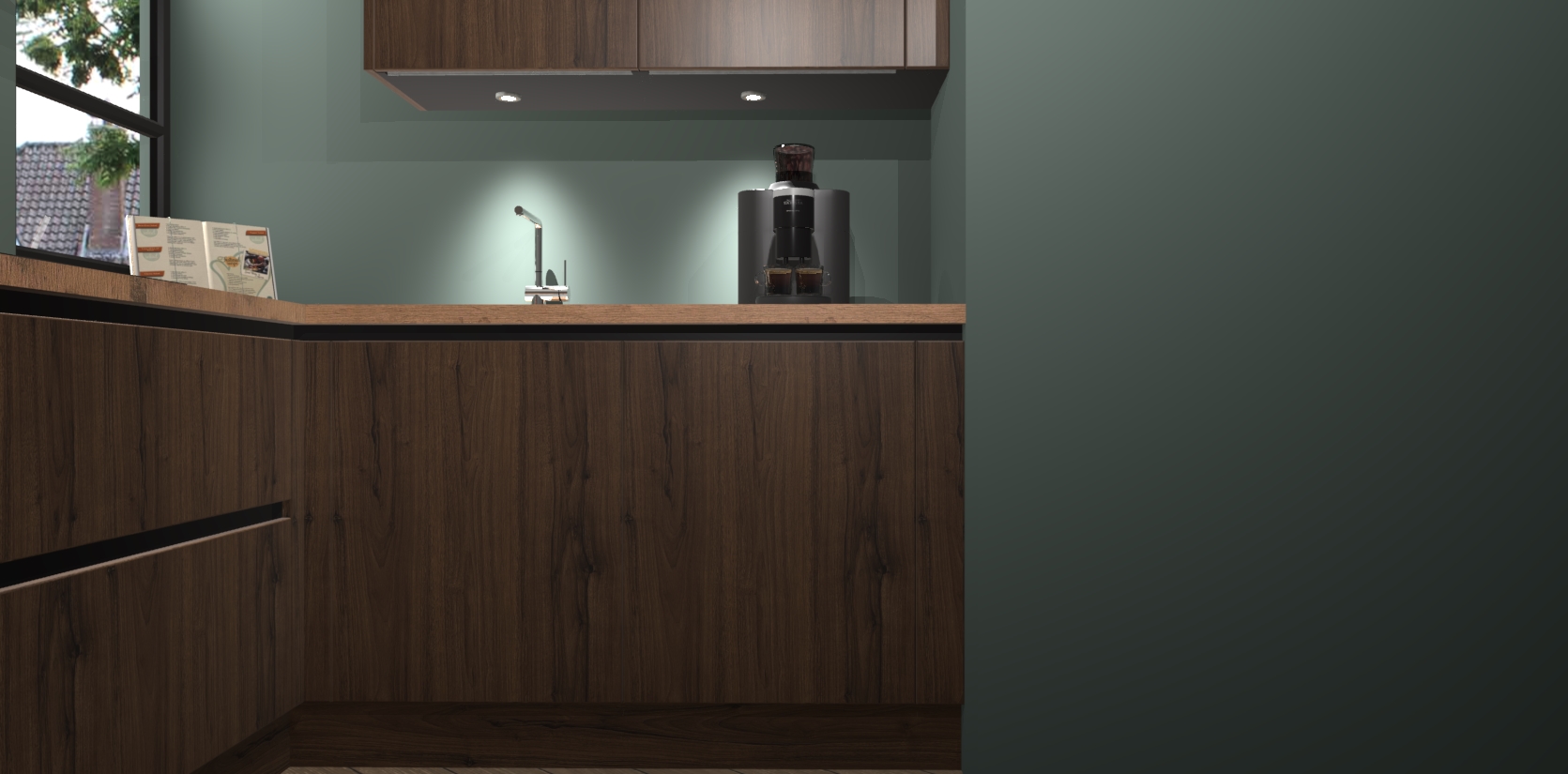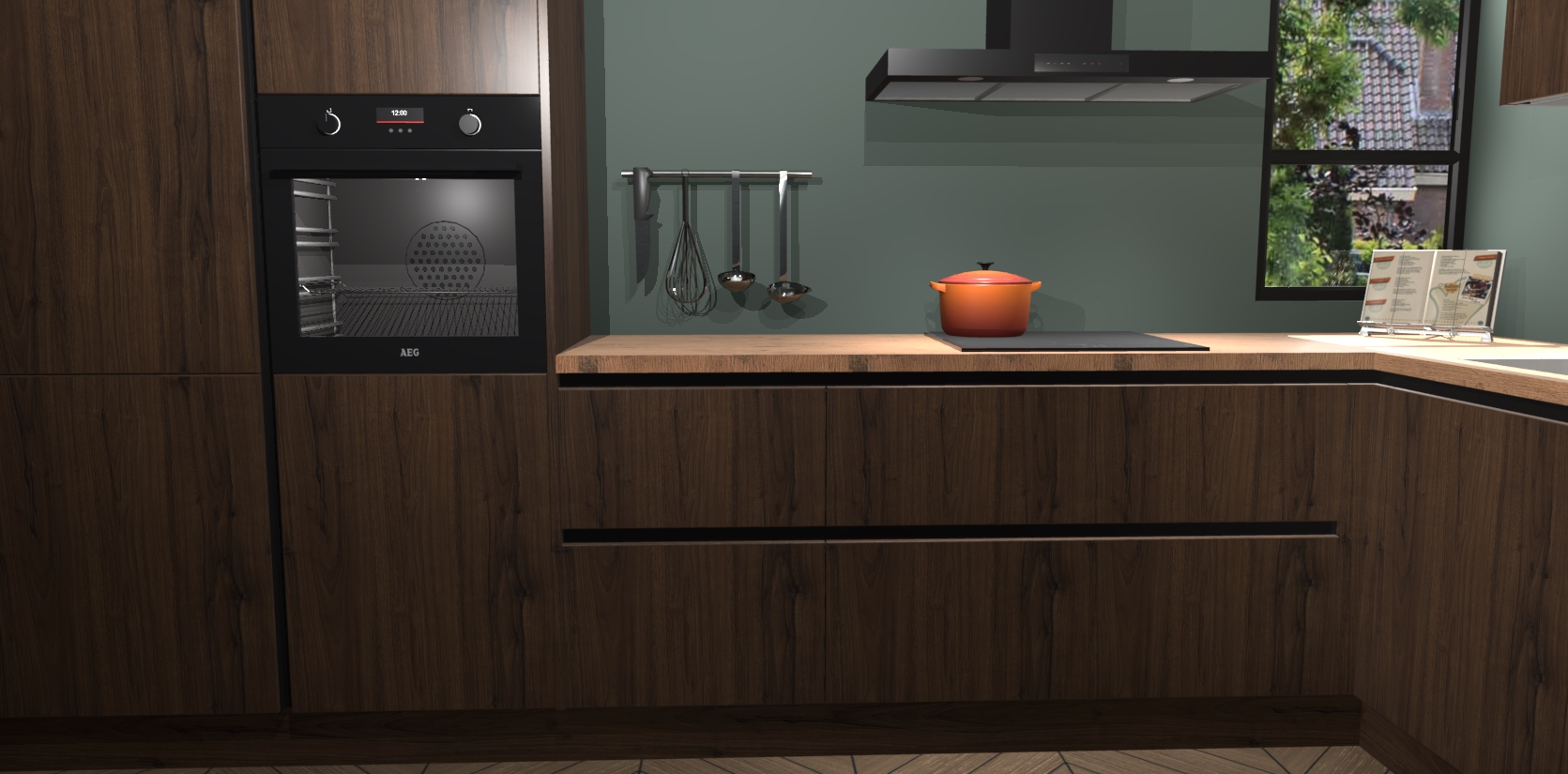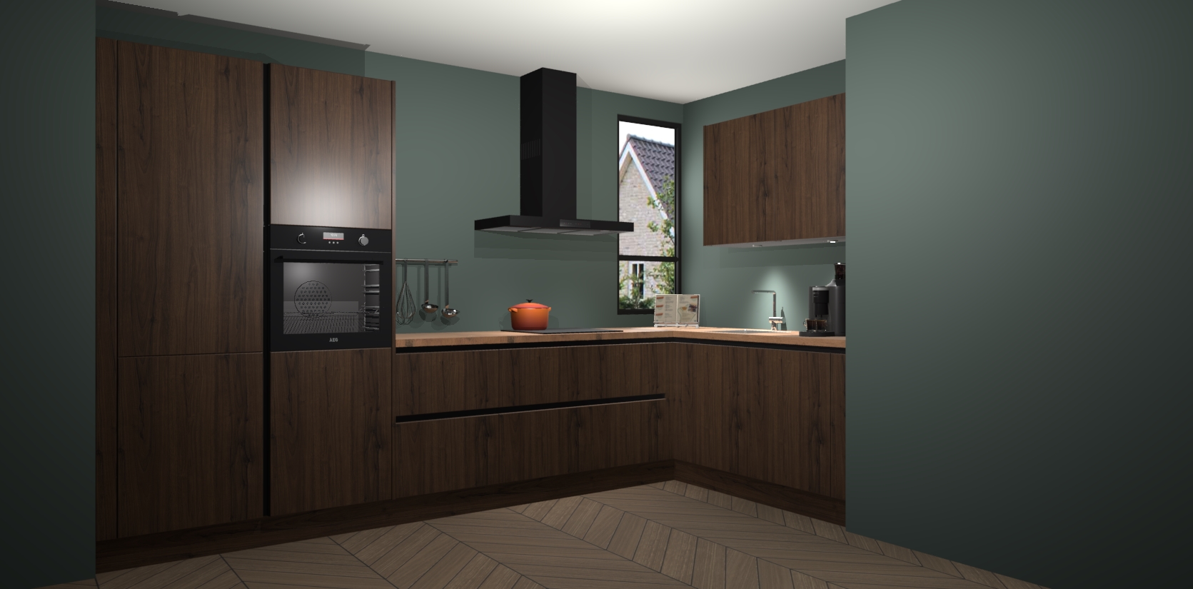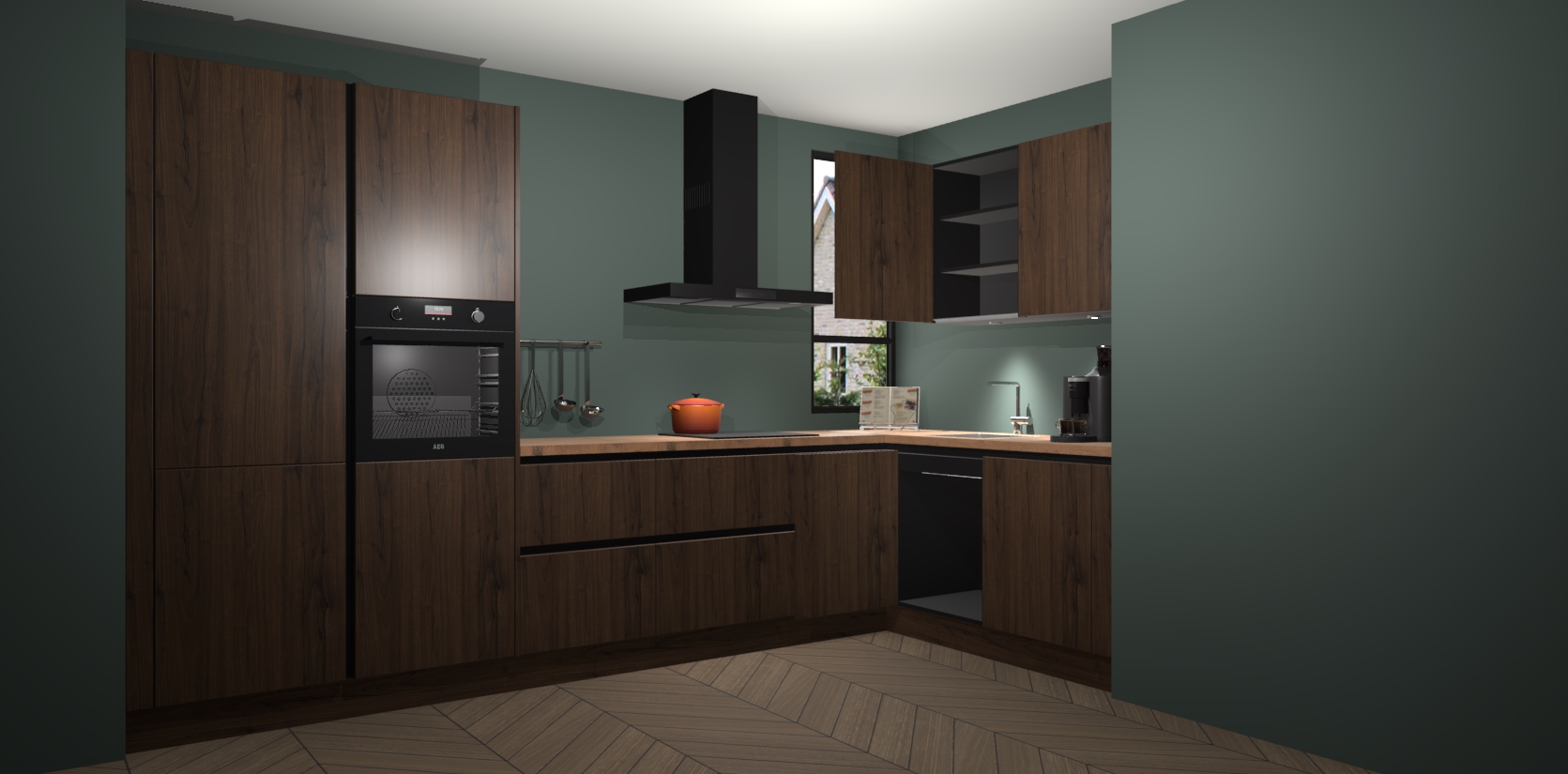 Welkom in uw nieuwe moderne keuken! Laat ons u voorstellen aan de noten greeploze keuken Vlaanderen. Deze prachtige hoekkeuken straalt exclusiviteit en luxe uit als geen ander. Het strakke design, de tijdloze kleuren en het greeploze model maken van deze keuken een moderne klassieker. En met voldoende opbergruimte heeft deze keuken echt voor ieder wat wils.