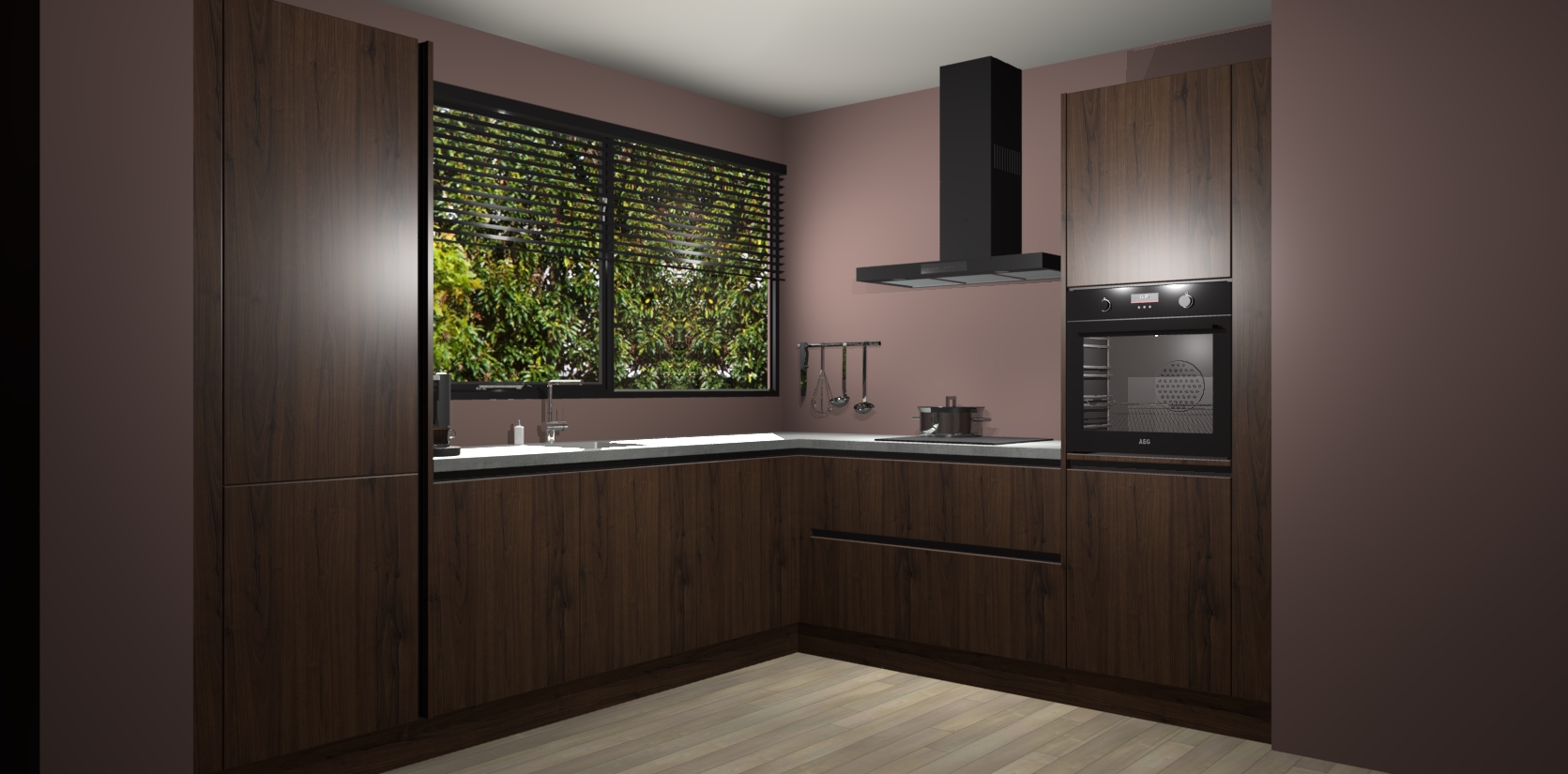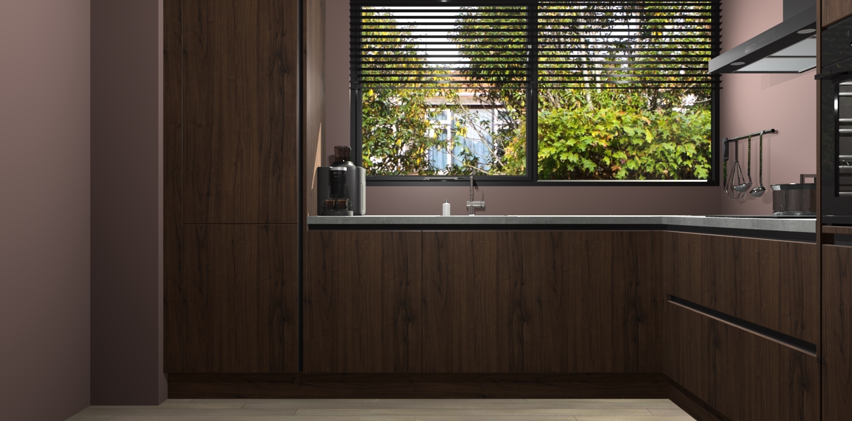 Wij presenteren de revolutie in keukens: de noten greeploze keuken Vogar. Met modern design, een tijdloos uiterlijk en kasten die al voor gemonteerd worden geleverd, laat deze stijlvolle keuken uw kookervaring op een hele nieuwe manier transformeren.
