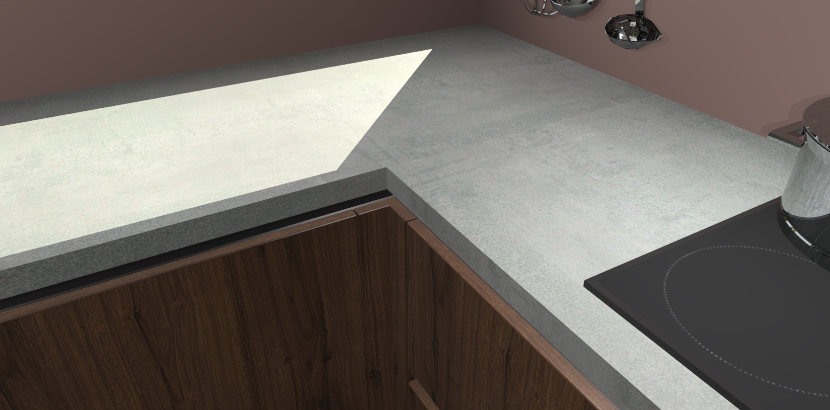 - Bij een hoekwerkblad zijn de hoeken in gevreesd en op maat gemaakt