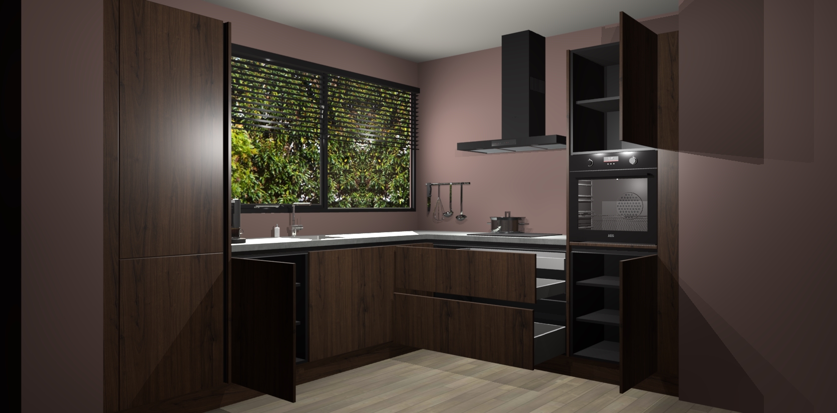 Met een modern, tijdloos design en ruime opslagruimte, zult u zich in no-time thuis voelen in uw nieuwe keuken. Uw leven wordt eenvoudiger met de soft-close deuren die voor het ultieme stille comfort zorgen - geen geluid dat u stoort terwijl u kookt. Ook is de keuken voorzien van 5 ingebouwde apparaten: een oven, inductie kookplaat, afzuigkap, vaatwasser en koelkast. Deze kunnen gemakkelijk na bestelling worden bijgewerkt naar AEG - waardoor uw luxe ervaring compleet is.