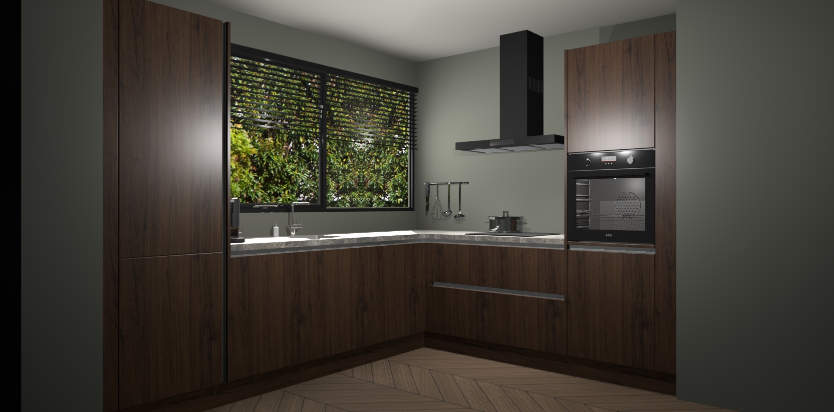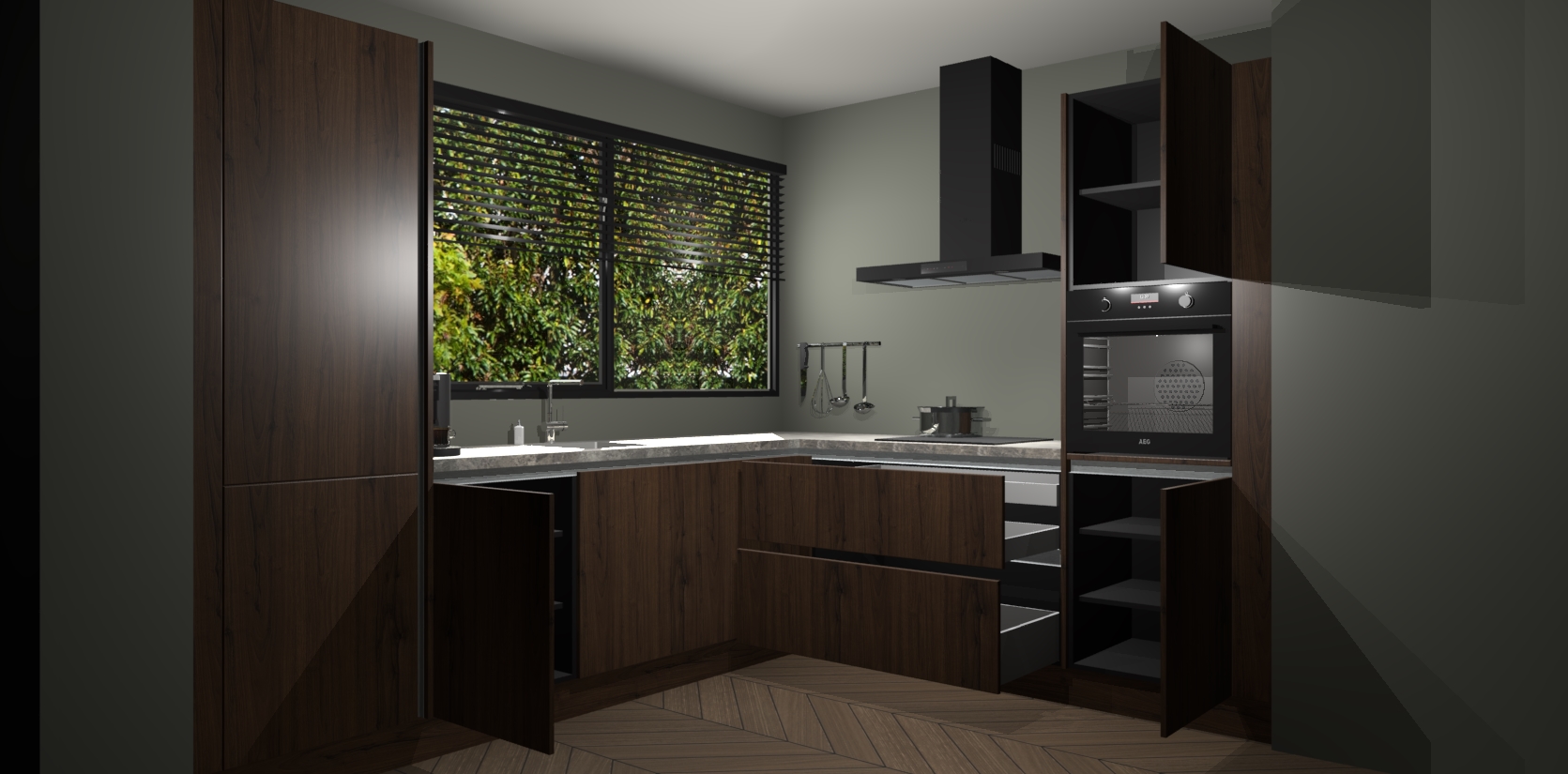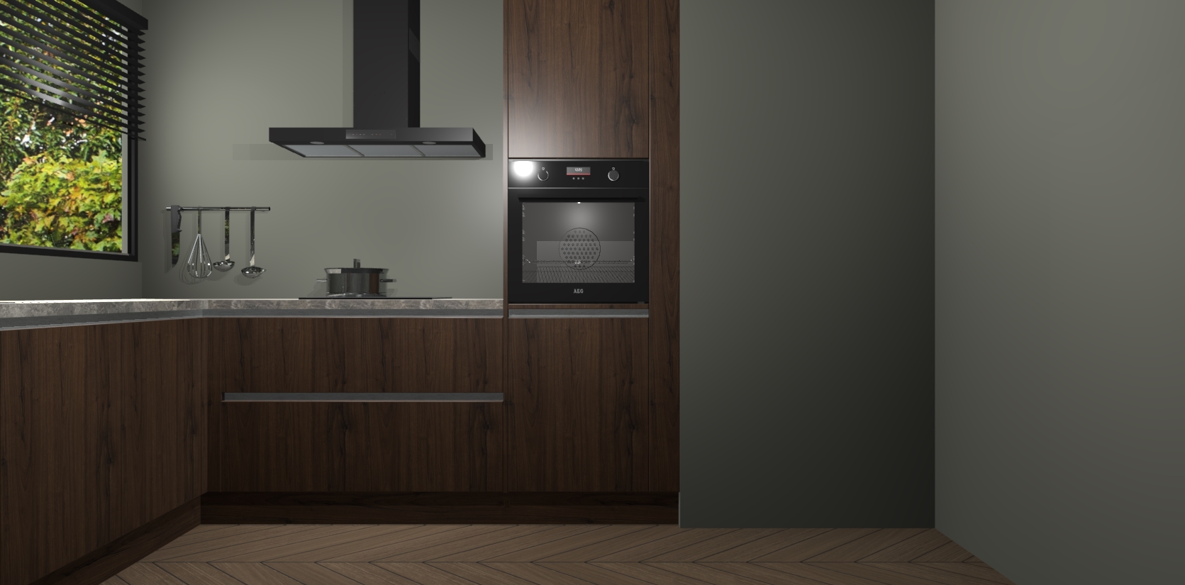 Met een modern, tijdloos design en ruime opslagruimte, zult u zich in no-time thuis voelen in uw nieuwe keuken. Uw leven wordt eenvoudiger met de soft-close deuren die voor het ultieme stille comfort zorgen - geen geluid dat u stoort terwijl u kookt. Ook is de keuken voorzien van 5 ingebouwde apparaten: een oven, inductie kookplaat, afzuigkap, vaatwasser en koelkast. Deze kunnen gemakkelijk na bestelling worden bijgewerkt naar AEG - waardoor uw luxe ervaring compleet is.