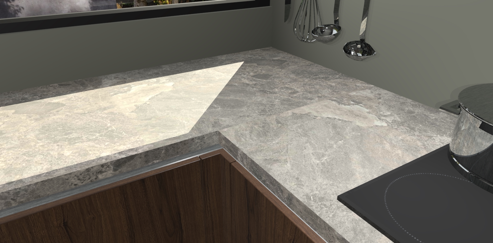 - Bij een hoekwerkblad zijn de hoeken in gevreesd en op maat gemaakt