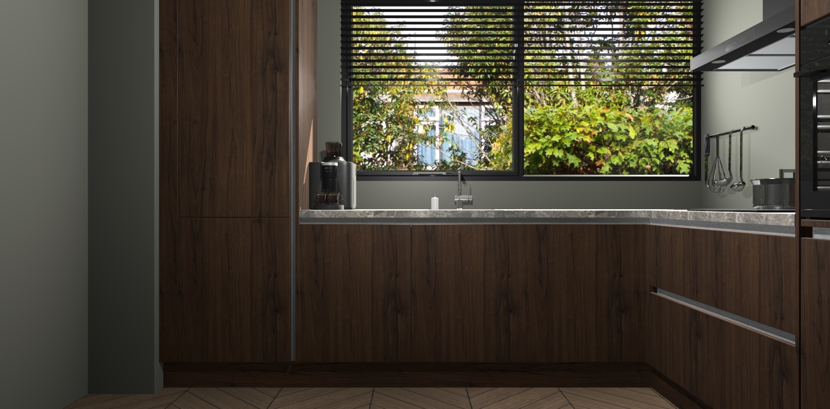 Wij presenteren de revolutie in keukens: de noten greeploze keuken Vogar. Met modern design, een tijdloos uiterlijk en kasten die al voor gemonteerd worden geleverd, laat deze stijlvolle keuken uw kookervaring op een hele nieuwe manier transformeren.
