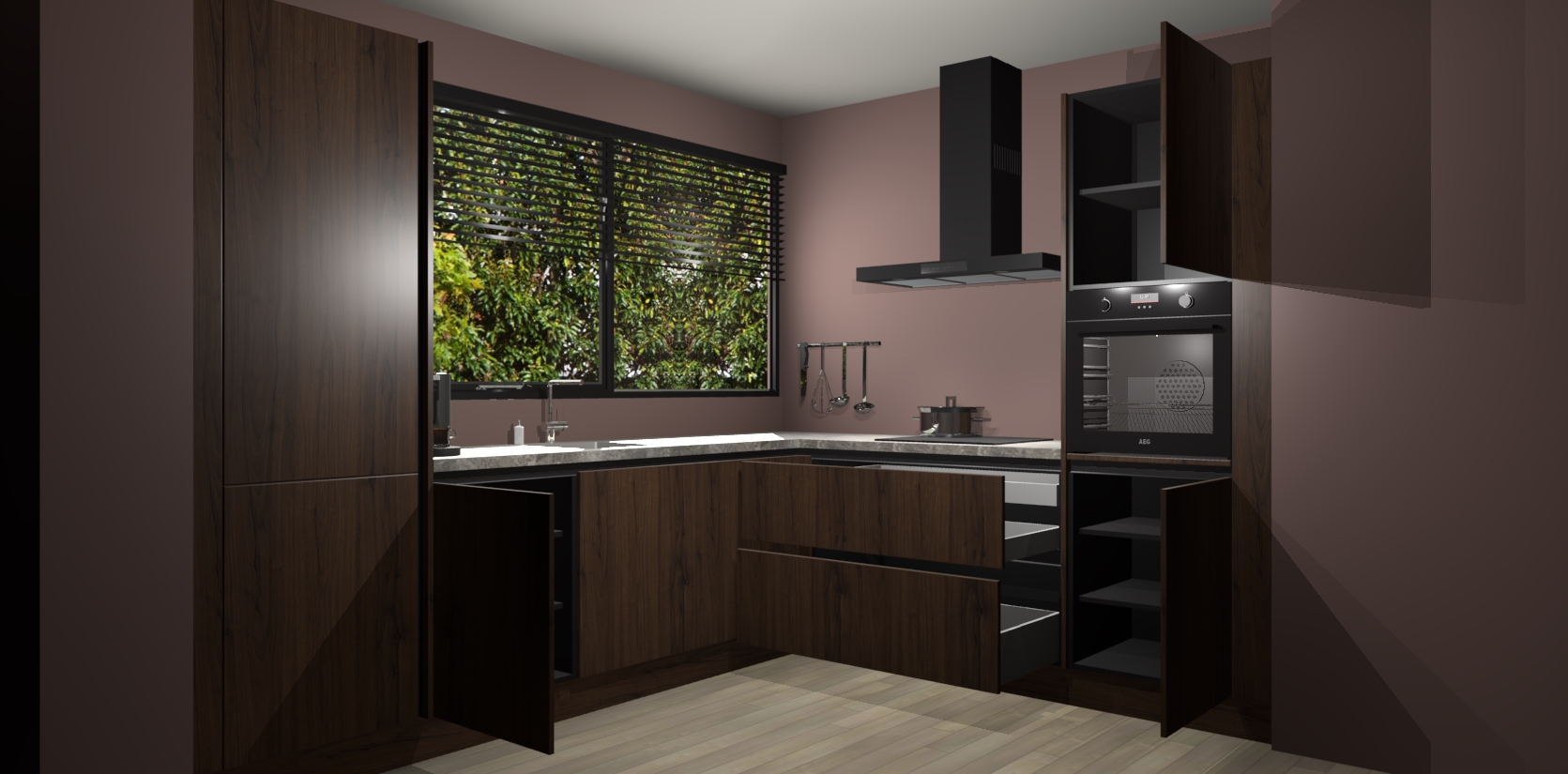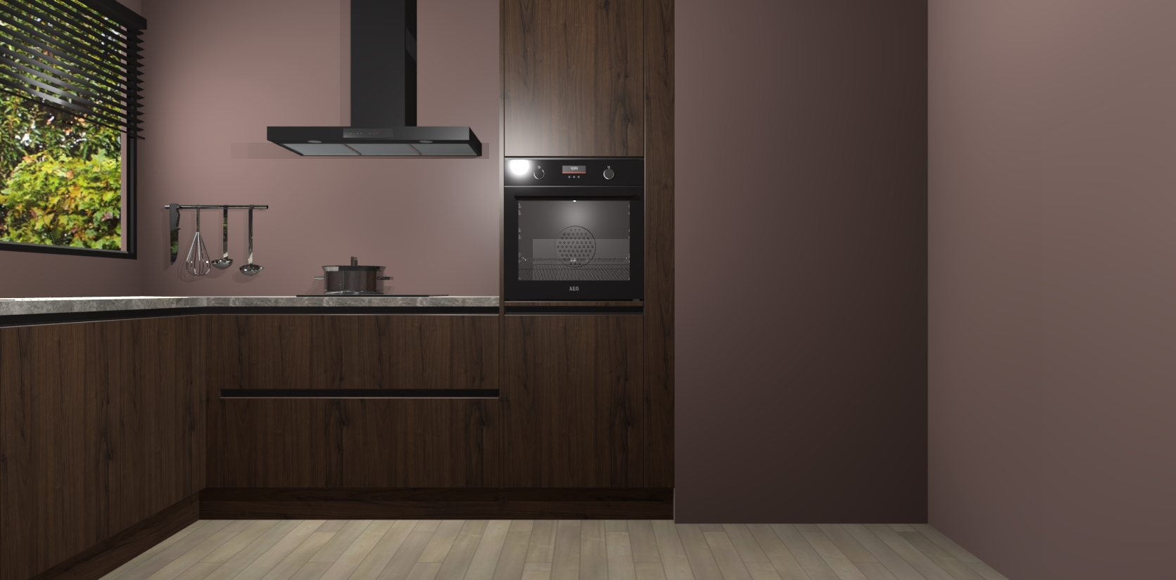 Met een modern, tijdloos design en ruime opslagruimte, zult u zich in no-time thuis voelen in uw nieuwe keuken. Uw leven wordt eenvoudiger met de soft-close deuren die voor het ultieme stille comfort zorgen - geen geluid dat u stoort terwijl u kookt. Ook is de keuken voorzien van 5 ingebouwde apparaten: een oven, inductie kookplaat, afzuigkap, vaatwasser en koelkast. Deze kunnen gemakkelijk na bestelling worden bijgewerkt naar AEG - waardoor uw luxe ervaring compleet is.