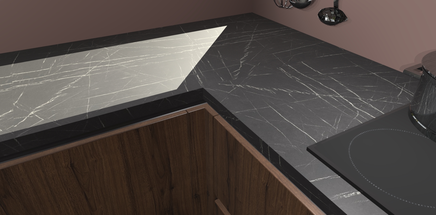 - Bij een hoekwerkblad zijn de hoeken in gevreesd en op maat gemaakt