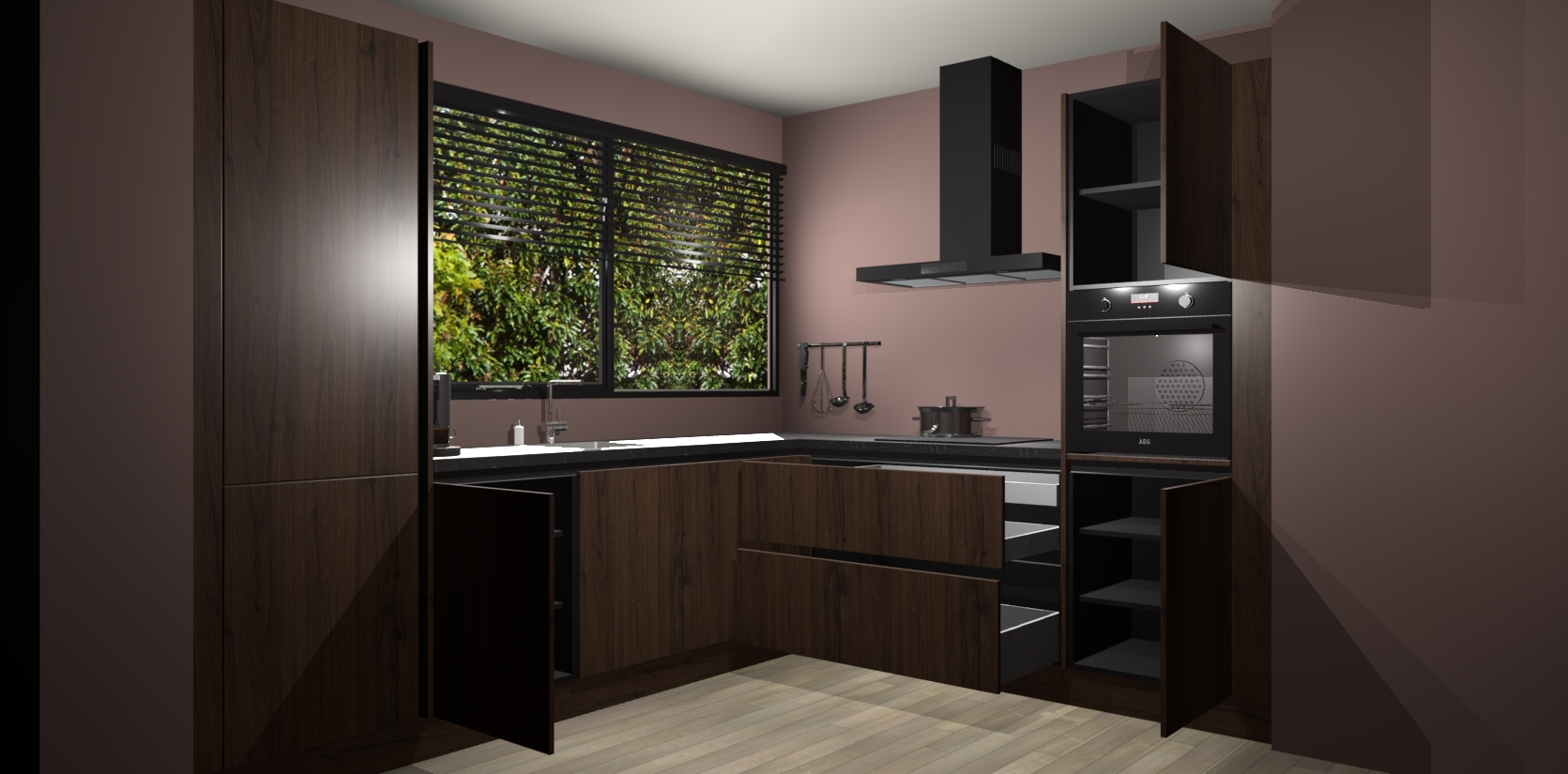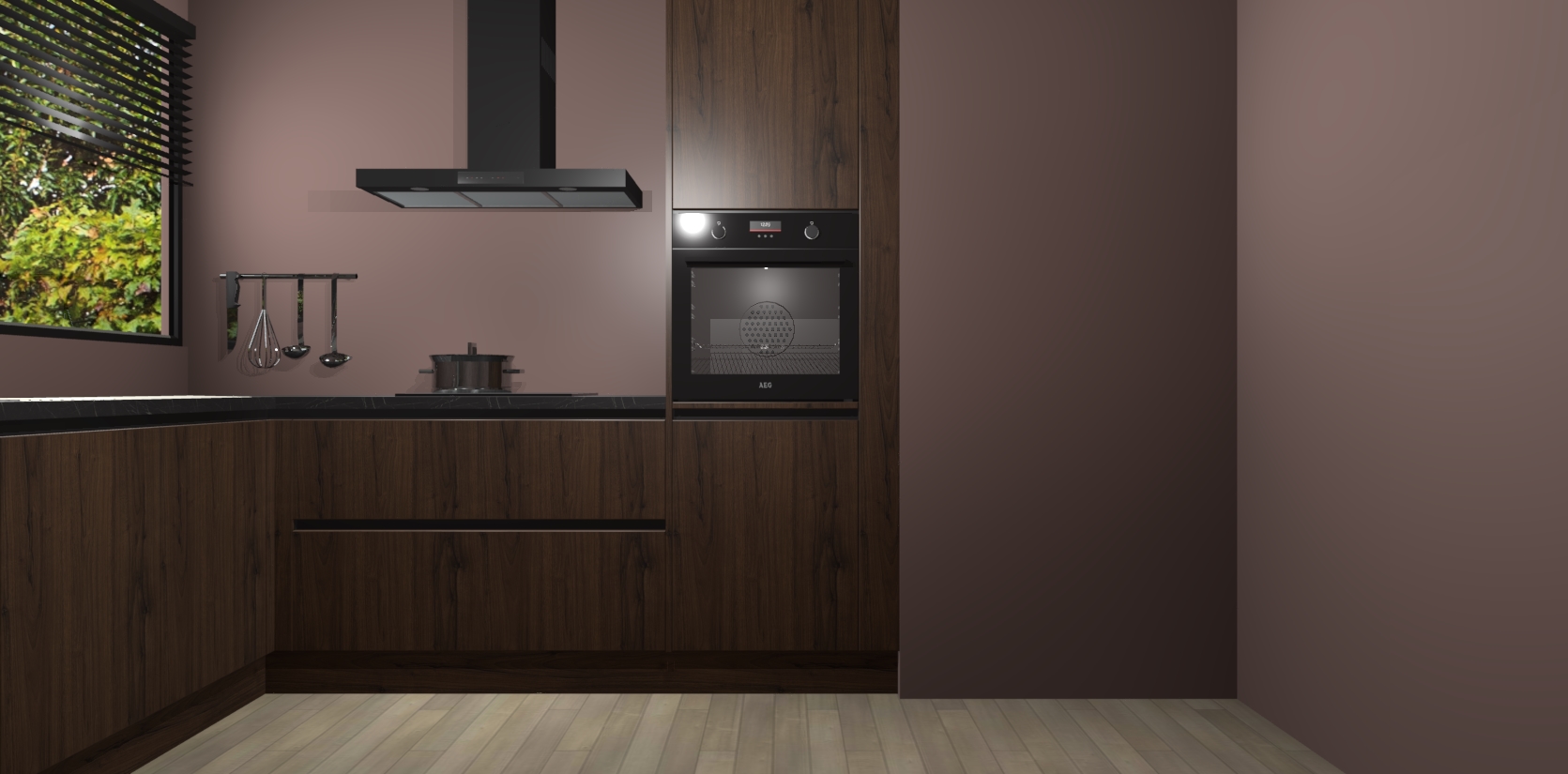 Met een modern, tijdloos design en ruime opslagruimte, zult u zich in no-time thuis voelen in uw nieuwe keuken. Uw leven wordt eenvoudiger met de soft-close deuren die voor het ultieme stille comfort zorgen - geen geluid dat u stoort terwijl u kookt. Ook is de keuken voorzien van 5 ingebouwde apparaten: een oven, inductie kookplaat, afzuigkap, vaatwasser en koelkast. Deze kunnen gemakkelijk na bestelling worden bijgewerkt naar AEG - waardoor uw luxe ervaring compleet is.