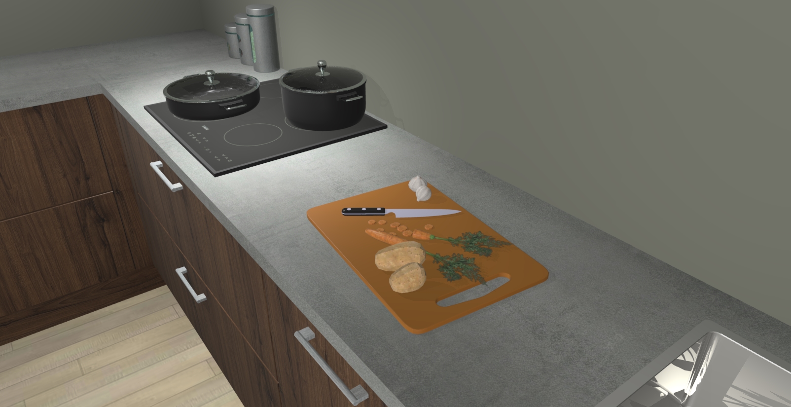 Inclusief plinten, stelpoten en werkblad