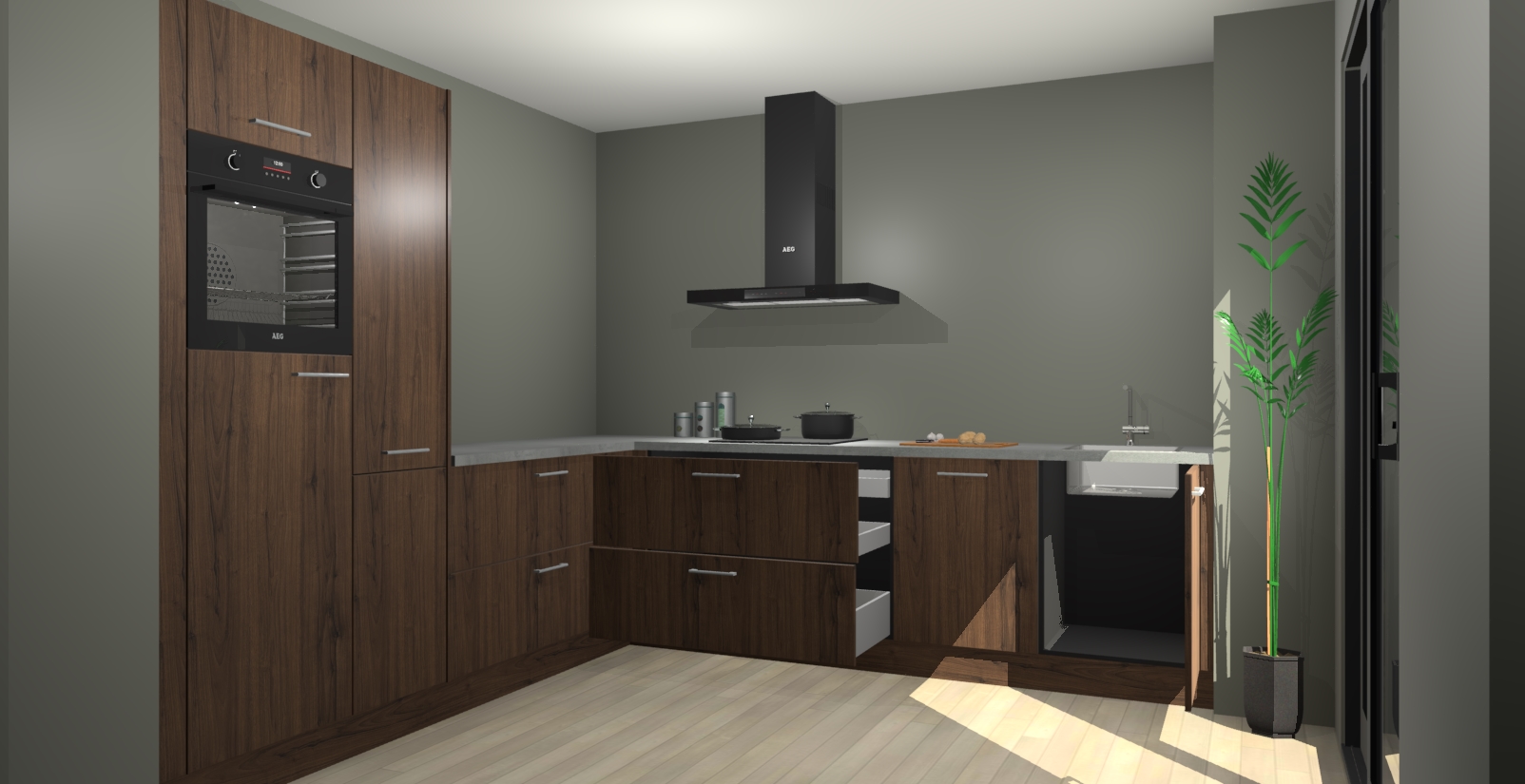 Laat u verrassen door de nieuwste en meest innovatieve keuken van dit moment: De Noten keuken Antibes. Deze chique keuken straalt een stijlvolle sfeer uit die zeker bewondering zal oogsten bij uw gasten. Als u op zoek bent naar voldoende opbergruimte voor al uw keukengadgets en -gerei, dan is dit de perfecte oplossing. Met ingebouwde apparatuur zoals een oven, inductiekookplaat, afzuigkap, vaatwasser en koelkast! U krijgt niet alleen veel opbergruimte, maar ook een betrouwbaar soft close-deursysteem dat ervoor zorgt dat er nooit meer kastdeuren dichtslaan!