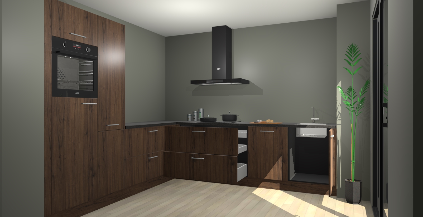 Laat u verrassen door de nieuwste en meest innovatieve keuken van dit moment: De Noten keuken Antibes. Deze chique keuken straalt een stijlvolle sfeer uit die zeker bewondering zal oogsten bij uw gasten. Als u op zoek bent naar voldoende opbergruimte voor al uw keukengadgets en -gerei, dan is dit de perfecte oplossing. Met ingebouwde apparatuur zoals een oven, inductiekookplaat, afzuigkap, vaatwasser en koelkast! U krijgt niet alleen veel opbergruimte, maar ook een betrouwbaar soft close-deursysteem dat ervoor zorgt dat er nooit meer kastdeuren dichtslaan!