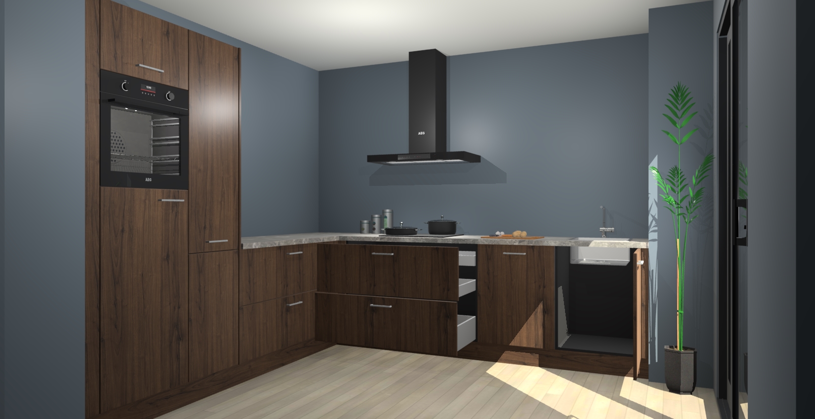 Inclusief plinten, stelpoten en werkblad