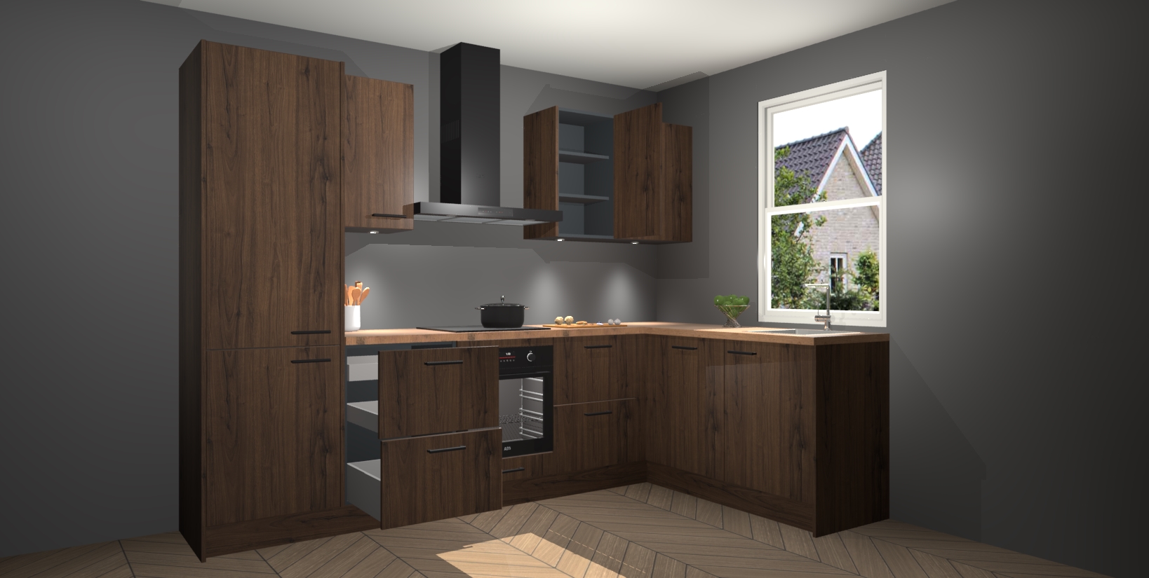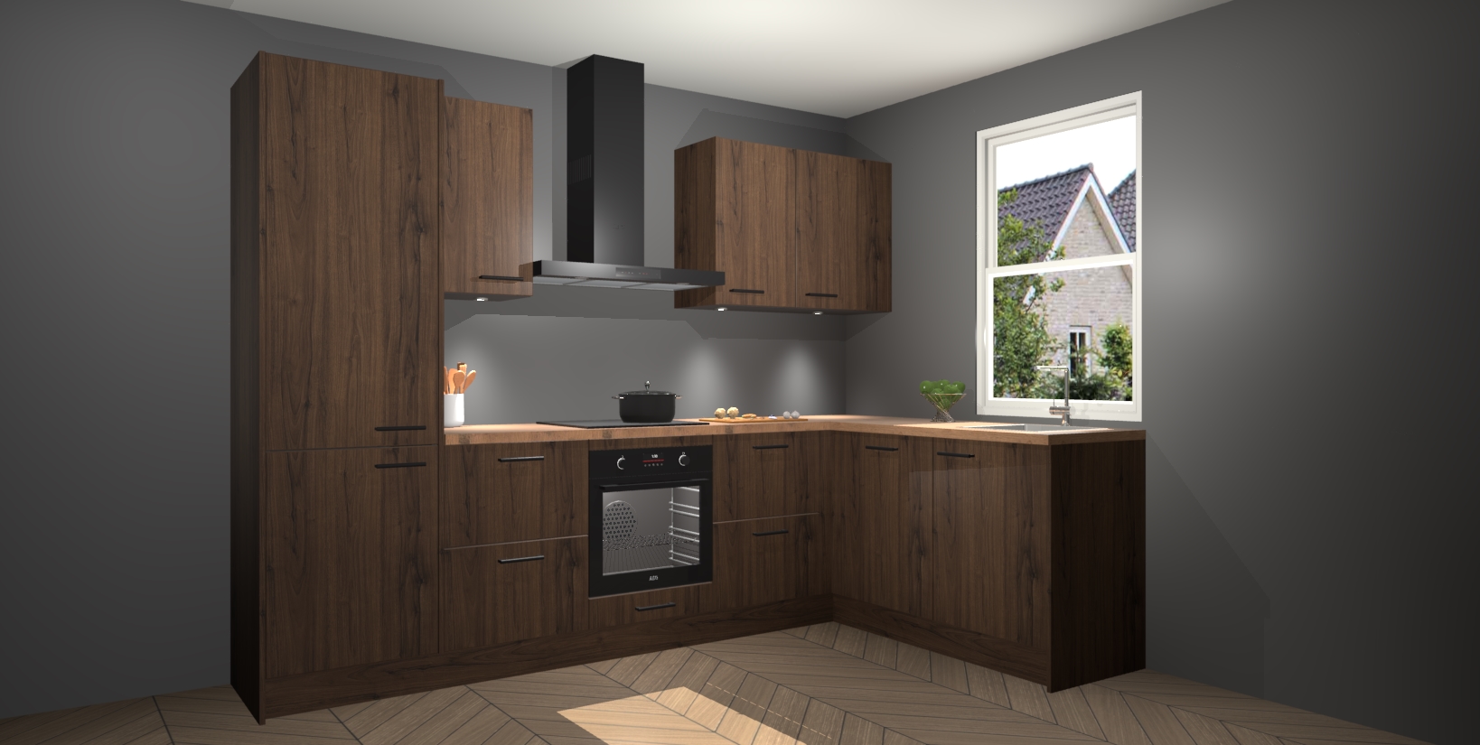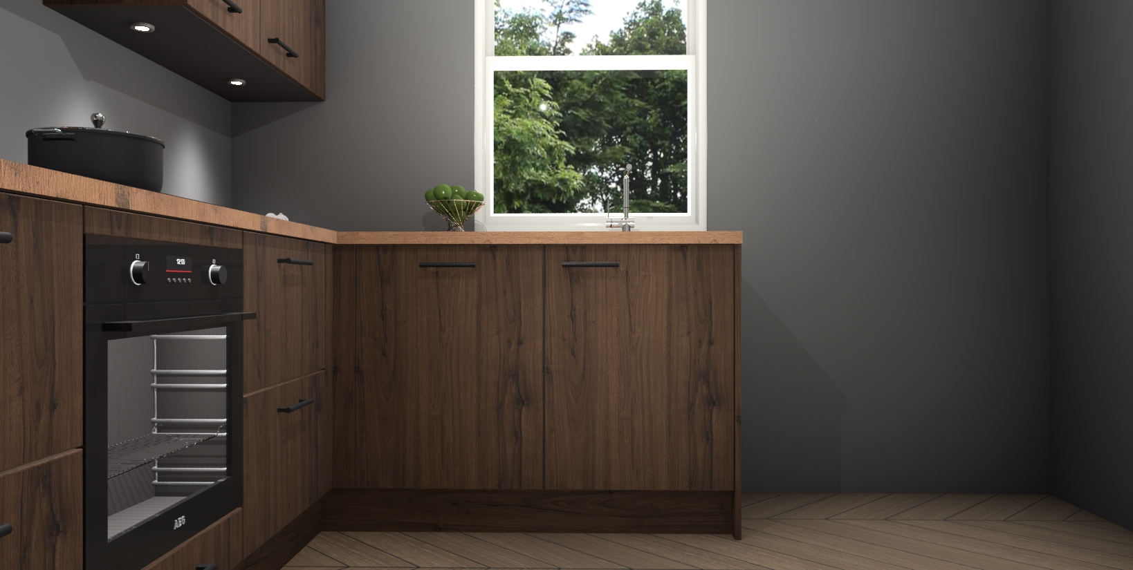 Maak kennis met de trendsettende en luxe Noten keuken Bazel! Deze uitzonderlijke keuken van Duitse kwaliteit is stijlvol, modern en perfect om elk huis mee op te fleuren. De binnenkant van de kasten worden meegenomen in een bijpassende kleur om een samenhangende eigentijdse esthetiek te voltooien. U zult dol zijn op hoe uw pas gerenoveerde keuken eruitziet met de Noten editie!