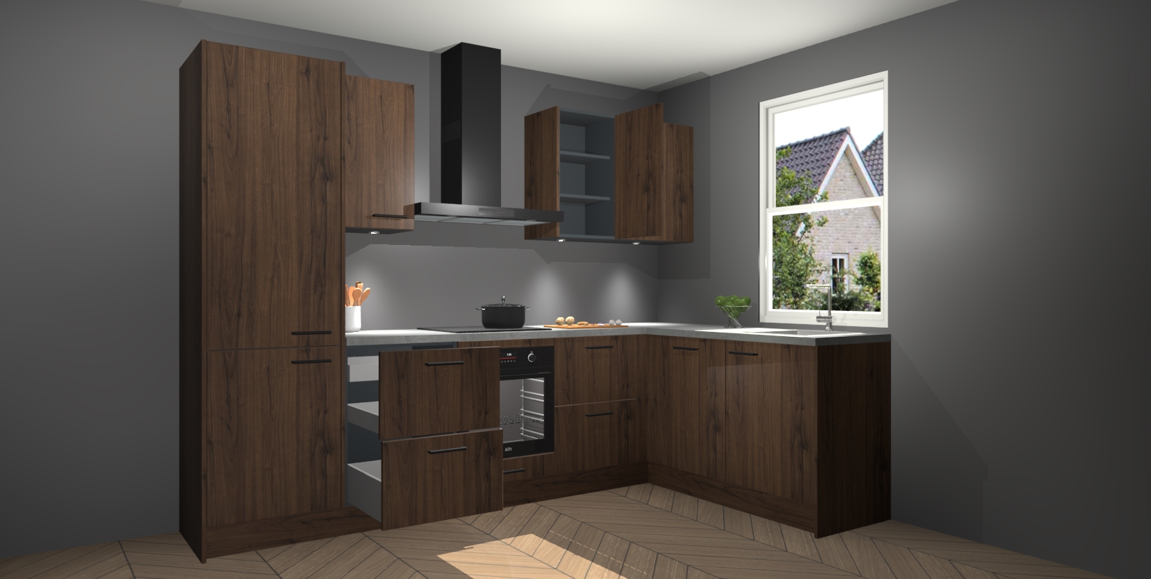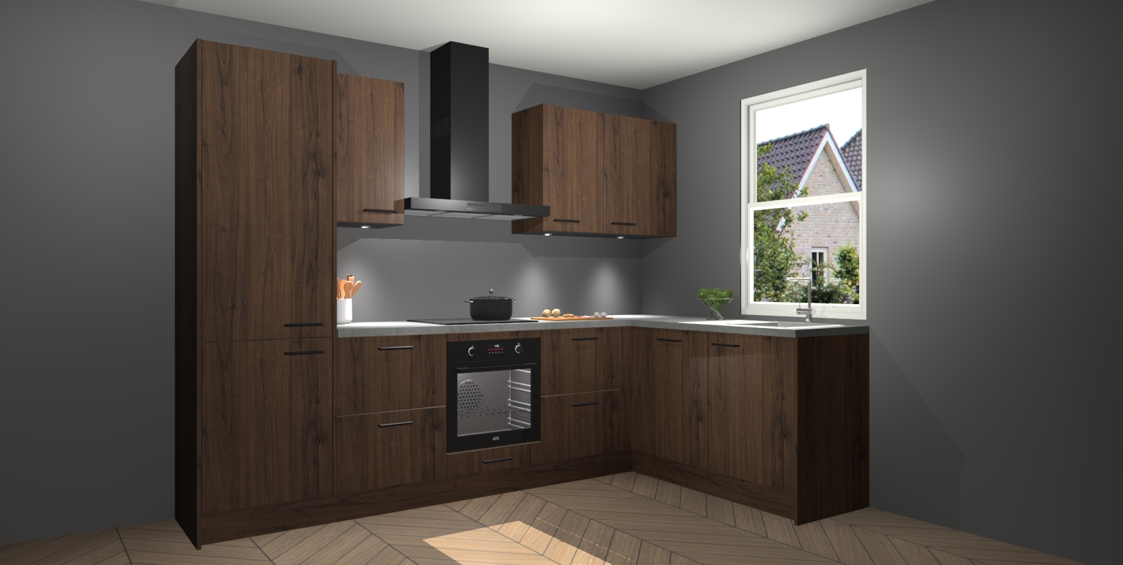 Maak kennis met de trendsettende en luxe Noten keuken Bazel! Deze uitzonderlijke keuken van Duitse kwaliteit is stijlvol, modern en perfect om elk huis mee op te fleuren. De binnenkant van de kasten worden meegenomen in een bijpassende kleur om een samenhangende eigentijdse esthetiek te voltooien. U zult dol zijn op hoe uw pas gerenoveerde keuken eruitziet met de Noten editie!