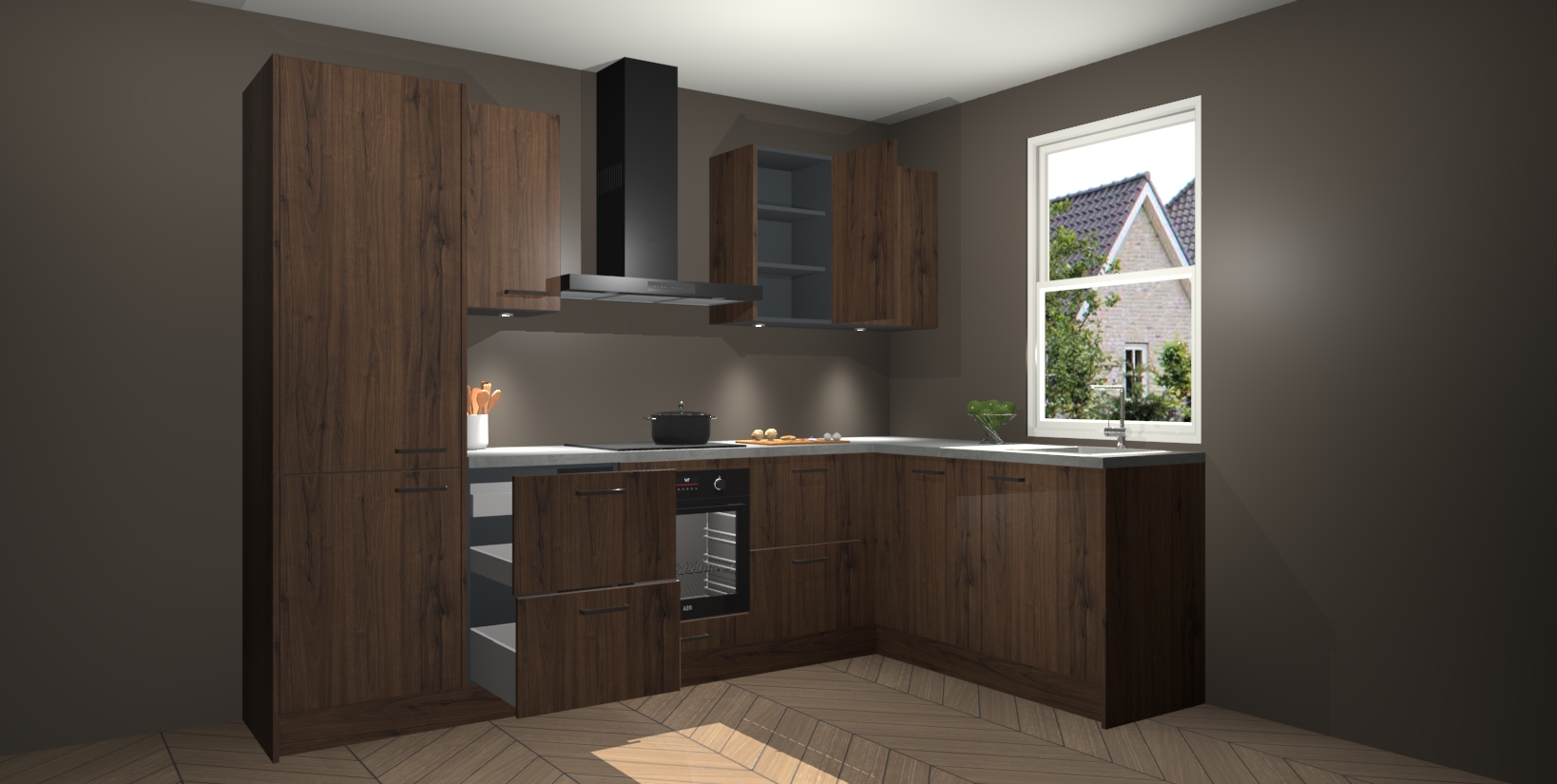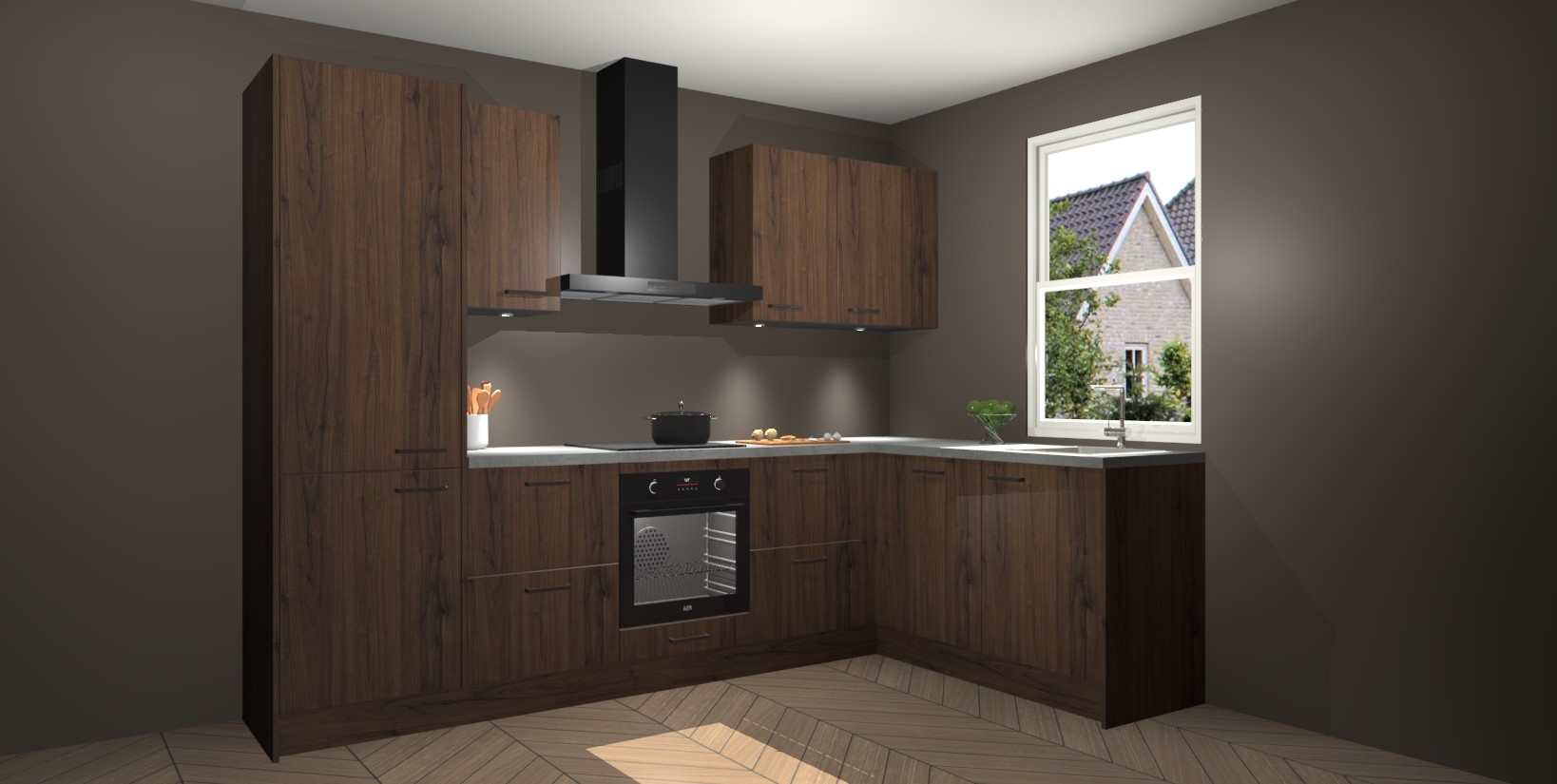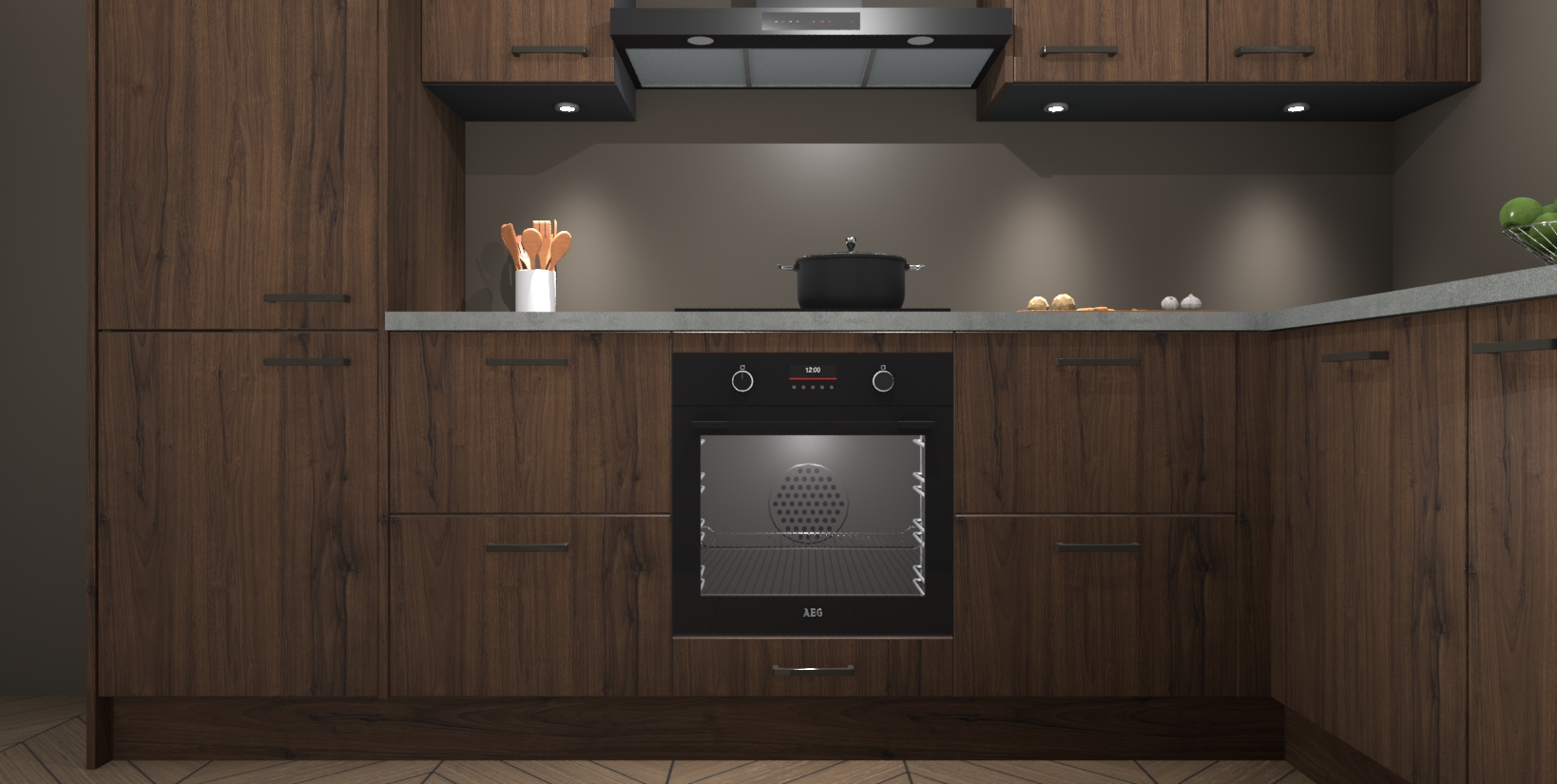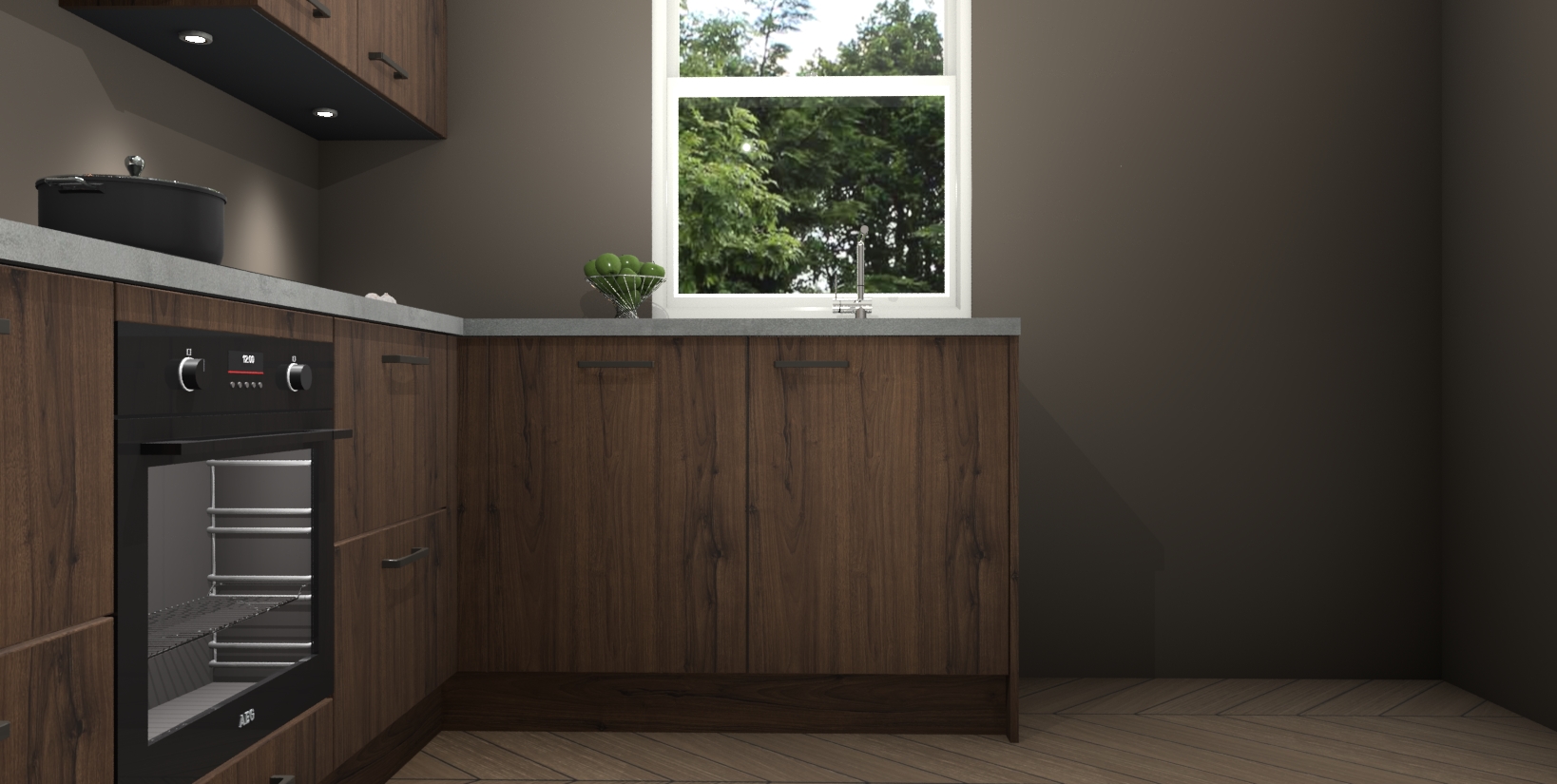 Maak kennis met de trendsettende en luxe Noten keuken Bazel! Deze uitzonderlijke keuken van Duitse kwaliteit is stijlvol, modern en perfect om elk huis mee op te fleuren. De binnenkant van de kasten worden meegenomen in een bijpassende kleur om een samenhangende eigentijdse esthetiek te voltooien. U zult dol zijn op hoe uw pas gerenoveerde keuken eruitziet met de Noten editie!