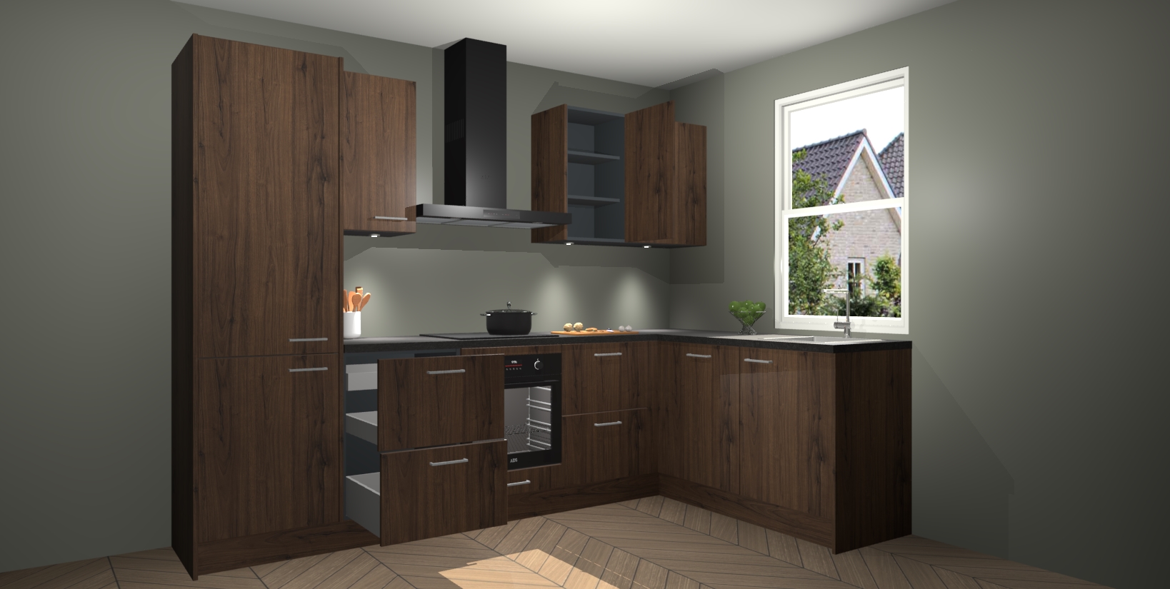 Maak kennis met de trendsettende en luxe Noten keuken Bazel! Deze uitzonderlijke keuken van Duitse kwaliteit is stijlvol, modern en perfect om elk huis mee op te fleuren. De binnenkant van de kasten worden meegenomen in een bijpassende kleur om een samenhangende eigentijdse esthetiek te voltooien. U zult dol zijn op hoe uw pas gerenoveerde keuken eruitziet met de Noten editie!