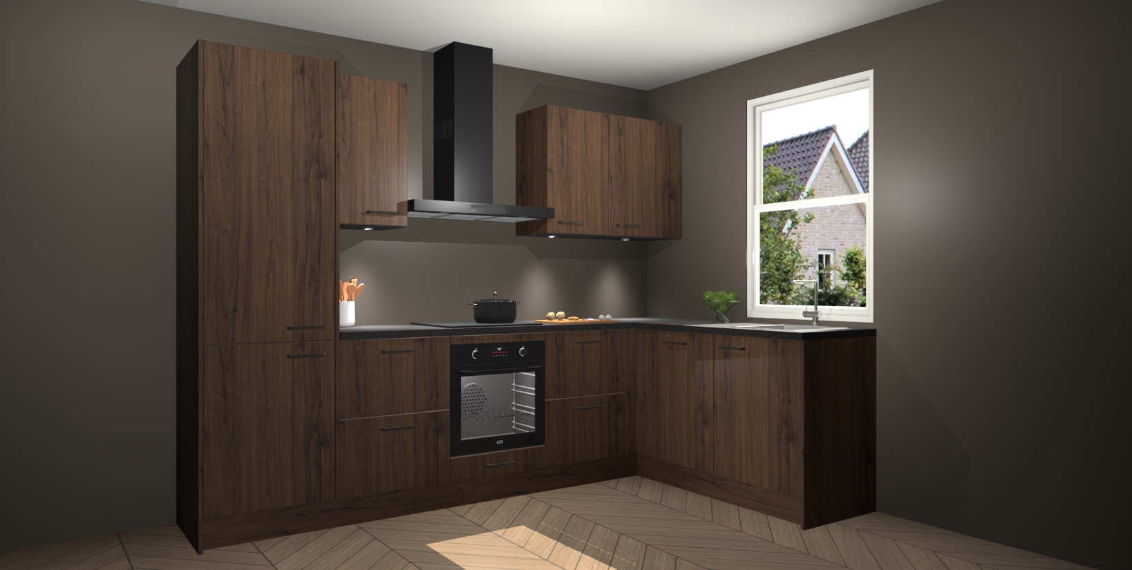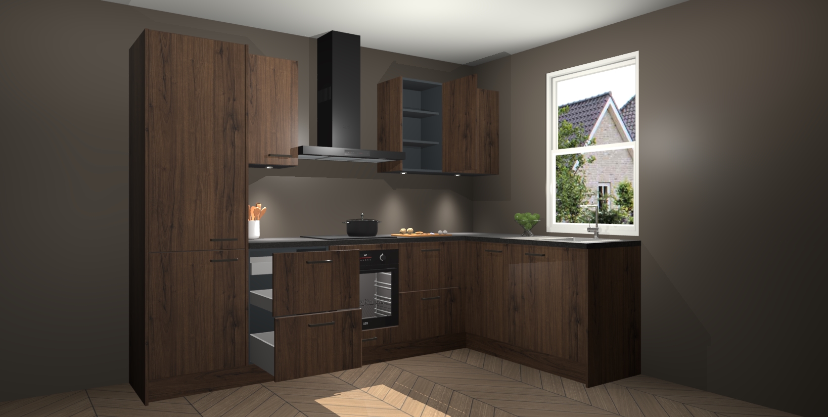 Maak kennis met de trendsettende en luxe Noten keuken Bazel! Deze uitzonderlijke keuken van Duitse kwaliteit is stijlvol, modern en perfect om elk huis mee op te fleuren. De binnenkant van de kasten worden meegenomen in een bijpassende kleur om een samenhangende eigentijdse esthetiek te voltooien. U zult dol zijn op hoe uw pas gerenoveerde keuken eruitziet met de Noten editie!