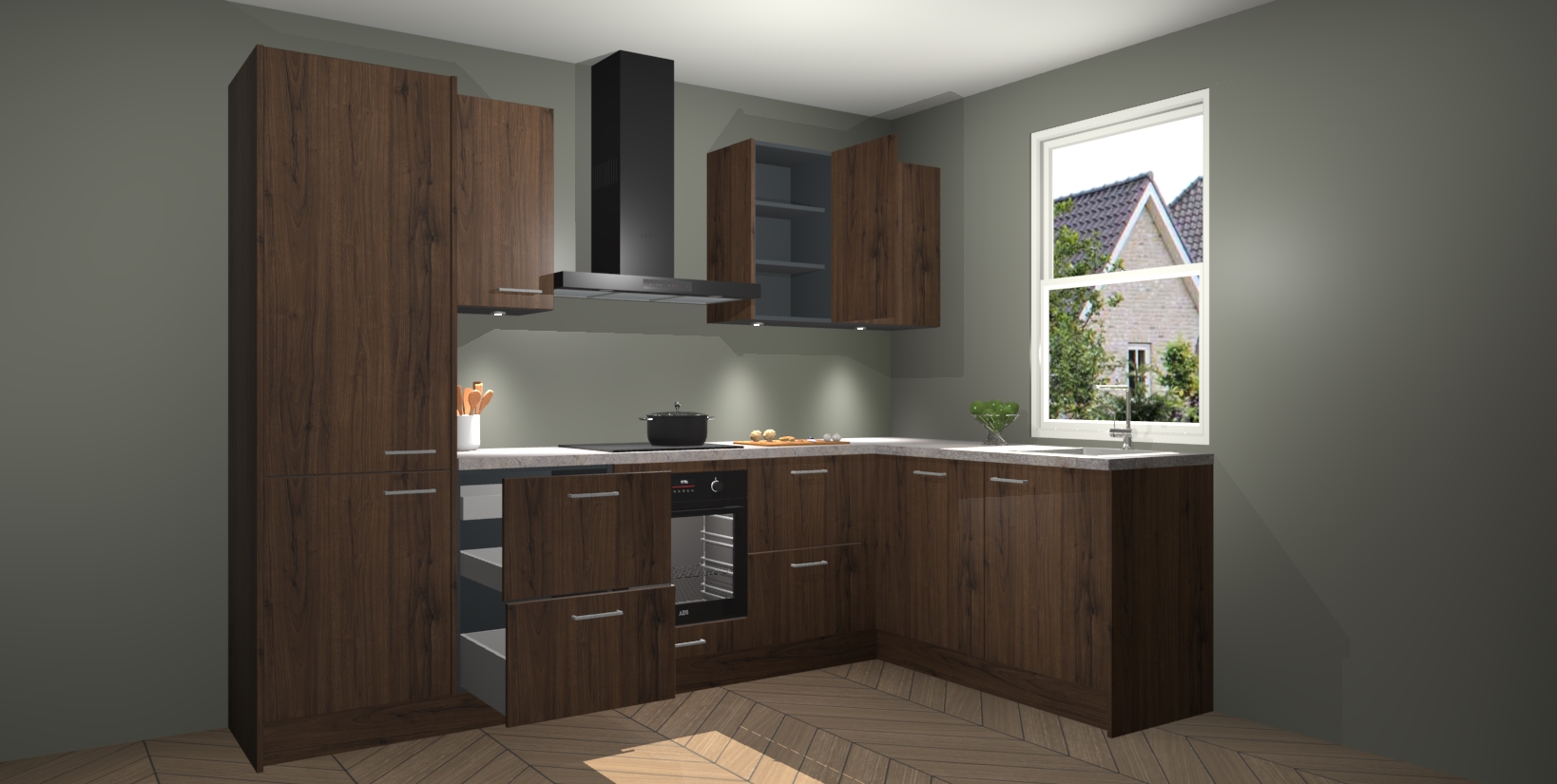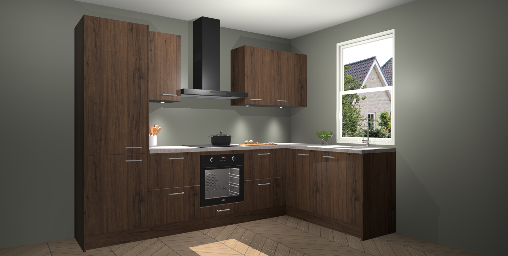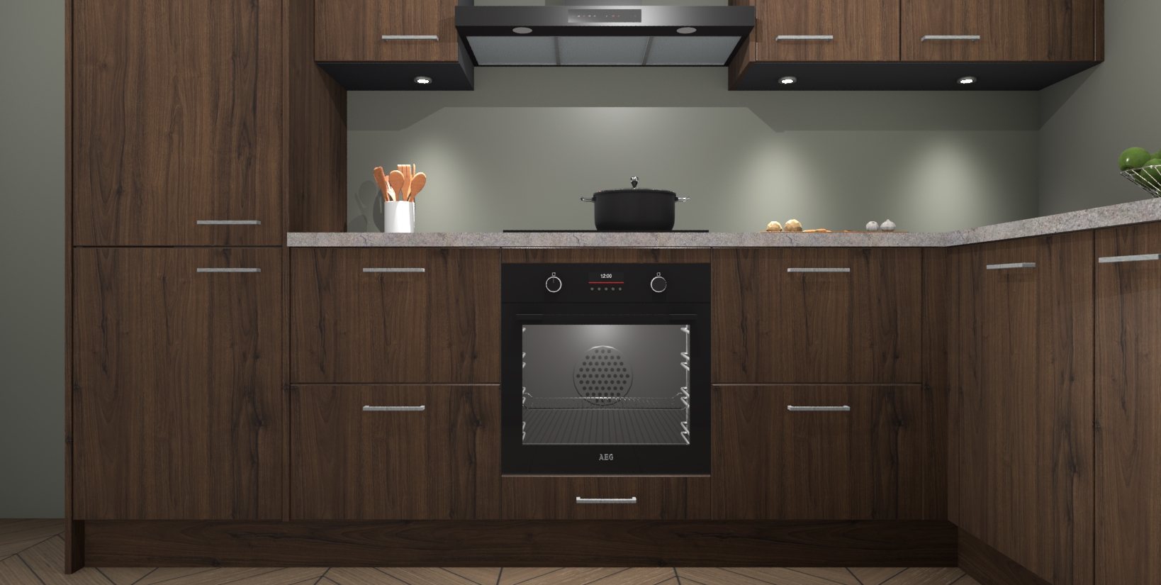 Maak kennis met de trendsettende en luxe Noten keuken Bazel! Deze uitzonderlijke keuken van Duitse kwaliteit is stijlvol, modern en perfect om elk huis mee op te fleuren. De binnenkant van de kasten worden meegenomen in een bijpassende kleur om een samenhangende eigentijdse esthetiek te voltooien. U zult dol zijn op hoe uw pas gerenoveerde keuken eruitziet met de Noten editie!