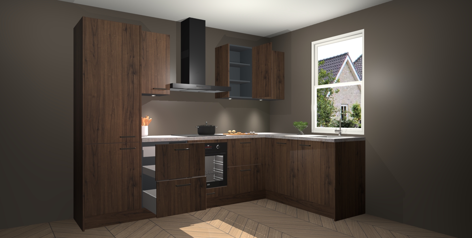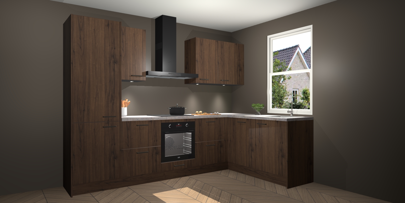 Maak kennis met de trendsettende en luxe Noten keuken Bazel! Deze uitzonderlijke keuken van Duitse kwaliteit is stijlvol, modern en perfect om elk huis mee op te fleuren. De binnenkant van de kasten worden meegenomen in een bijpassende kleur om een samenhangende eigentijdse esthetiek te voltooien. U zult dol zijn op hoe uw pas gerenoveerde keuken eruitziet met de Noten editie!