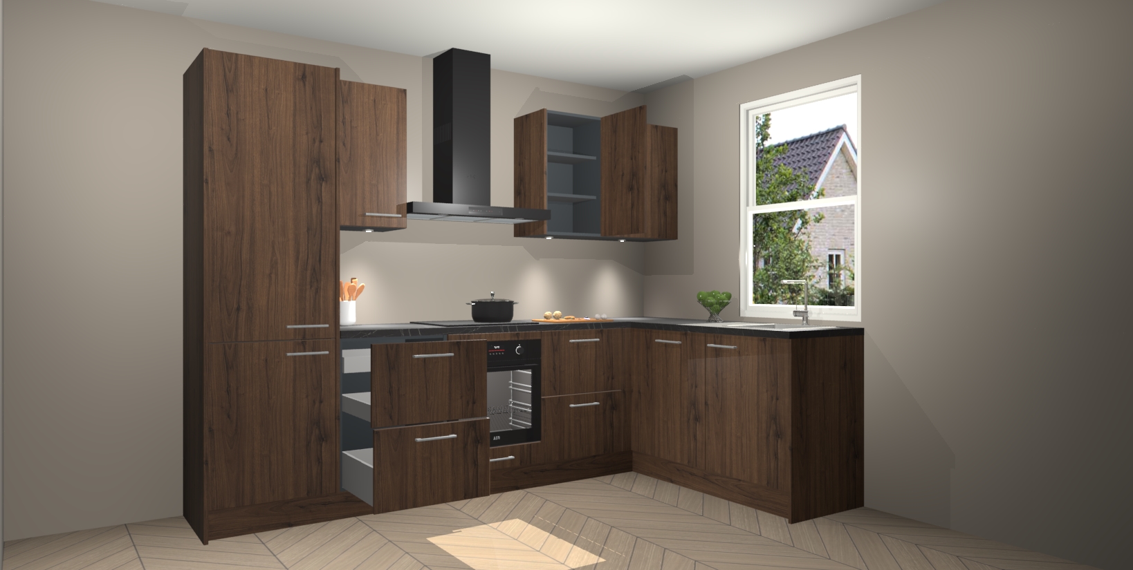 Maak kennis met de trendsettende en luxe Noten keuken Bazel! Deze uitzonderlijke keuken van Duitse kwaliteit is stijlvol, modern en perfect om elk huis mee op te fleuren. De binnenkant van de kasten worden meegenomen in een bijpassende kleur om een samenhangende eigentijdse esthetiek te voltooien. U zult dol zijn op hoe uw pas gerenoveerde keuken eruitziet met de Noten editie!