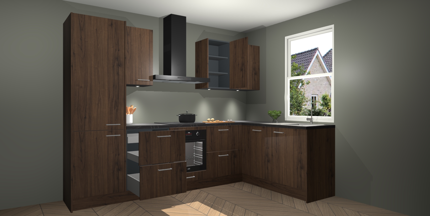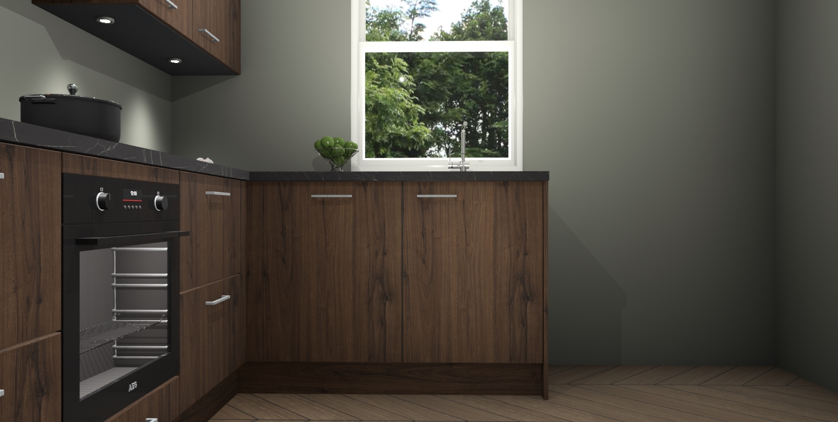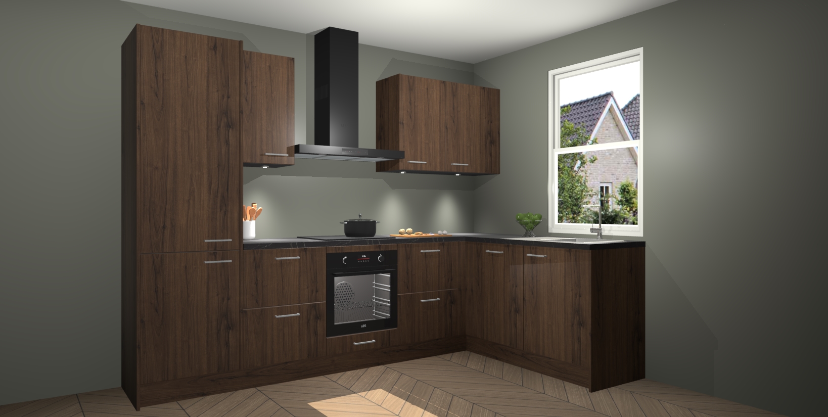 Maak kennis met de trendsettende en luxe Noten keuken Bazel! Deze uitzonderlijke keuken van Duitse kwaliteit is stijlvol, modern en perfect om elk huis mee op te fleuren. De binnenkant van de kasten worden meegenomen in een bijpassende kleur om een samenhangende eigentijdse esthetiek te voltooien. U zult dol zijn op hoe uw pas gerenoveerde keuken eruitziet met de Noten editie!