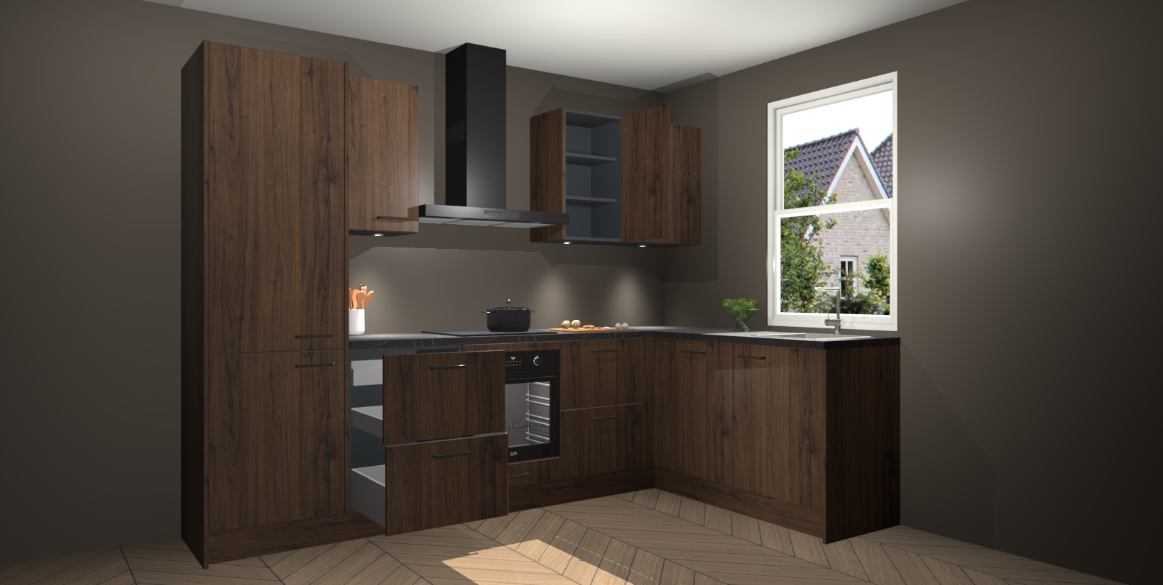 Maak kennis met de trendsettende en luxe Noten keuken Bazel! Deze uitzonderlijke keuken van Duitse kwaliteit is stijlvol, modern en perfect om elk huis mee op te fleuren. De binnenkant van de kasten worden meegenomen in een bijpassende kleur om een samenhangende eigentijdse esthetiek te voltooien. U zult dol zijn op hoe uw pas gerenoveerde keuken eruitziet met de Noten editie!