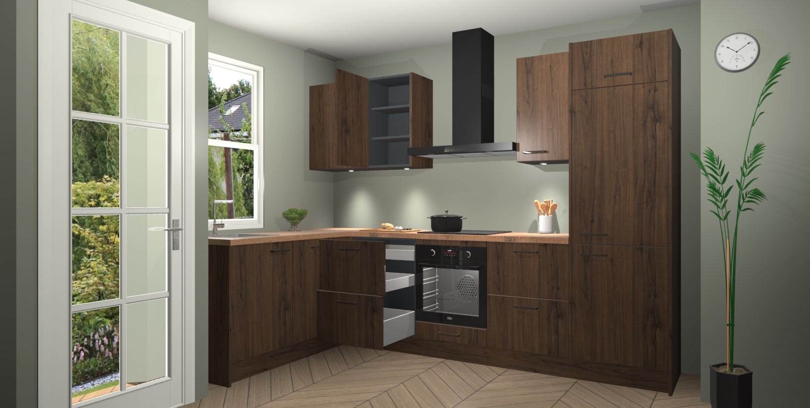 Bent u op zoek naar een strakke, moderne hoekkeuken die uw huis oppept en een moderne uitstraling geeft? Kijk dan niet verder dan de noten keuken Beijing. Deze verbluffende hoekkeuken tilt hedendaags design naar een hoger niveau. Qua stijl is deze chique hoekkeuken voorzien van noten accenten, om een strakke maar opvallende look te creëren. De binnenkant van de kasten is afgewerkt in dezelfde prachtige noten kleur voor extra esthetische aantrekkingskracht.