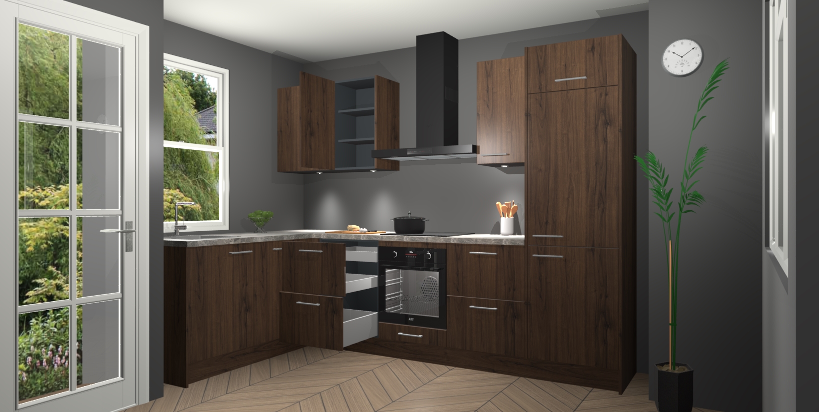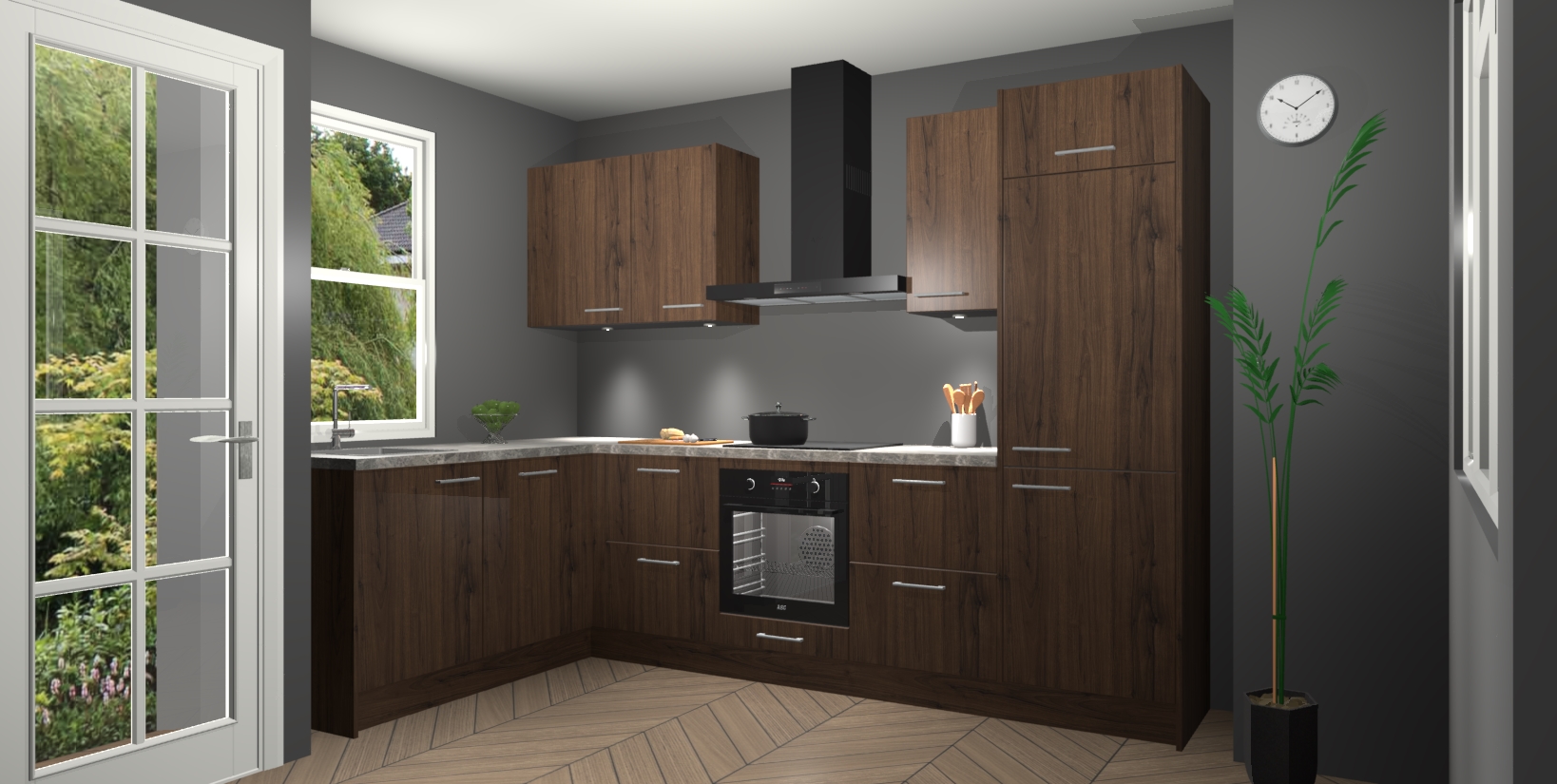 Bent u op zoek naar een strakke, moderne hoekkeuken die uw huis oppept en een moderne uitstraling geeft? Kijk dan niet verder dan de noten keuken Beijing. Deze verbluffende hoekkeuken tilt hedendaags design naar een hoger niveau. Qua stijl is deze chique hoekkeuken voorzien van noten accenten, om een strakke maar opvallende look te creëren. De binnenkant van de kasten is afgewerkt in dezelfde prachtige noten kleur voor extra esthetische aantrekkingskracht.