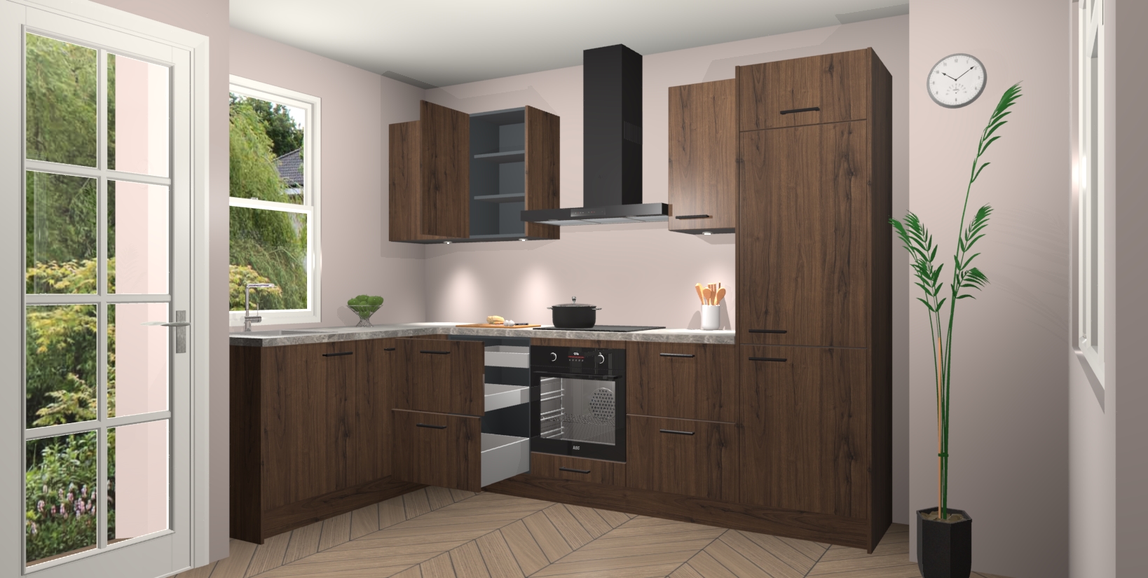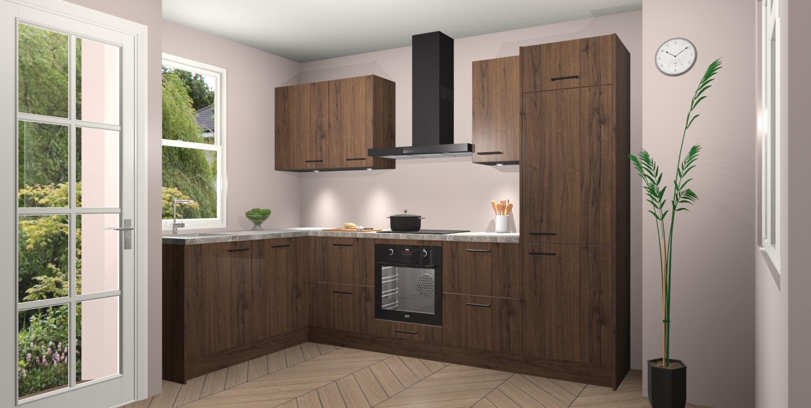Bent u op zoek naar een strakke, moderne hoekkeuken die uw huis oppept en een moderne uitstraling geeft? Kijk dan niet verder dan de noten keuken Beijing. Deze verbluffende hoekkeuken tilt hedendaags design naar een hoger niveau. Qua stijl is deze chique hoekkeuken voorzien van noten accenten, om een strakke maar opvallende look te creëren. De binnenkant van de kasten is afgewerkt in dezelfde prachtige noten kleur voor extra esthetische aantrekkingskracht.