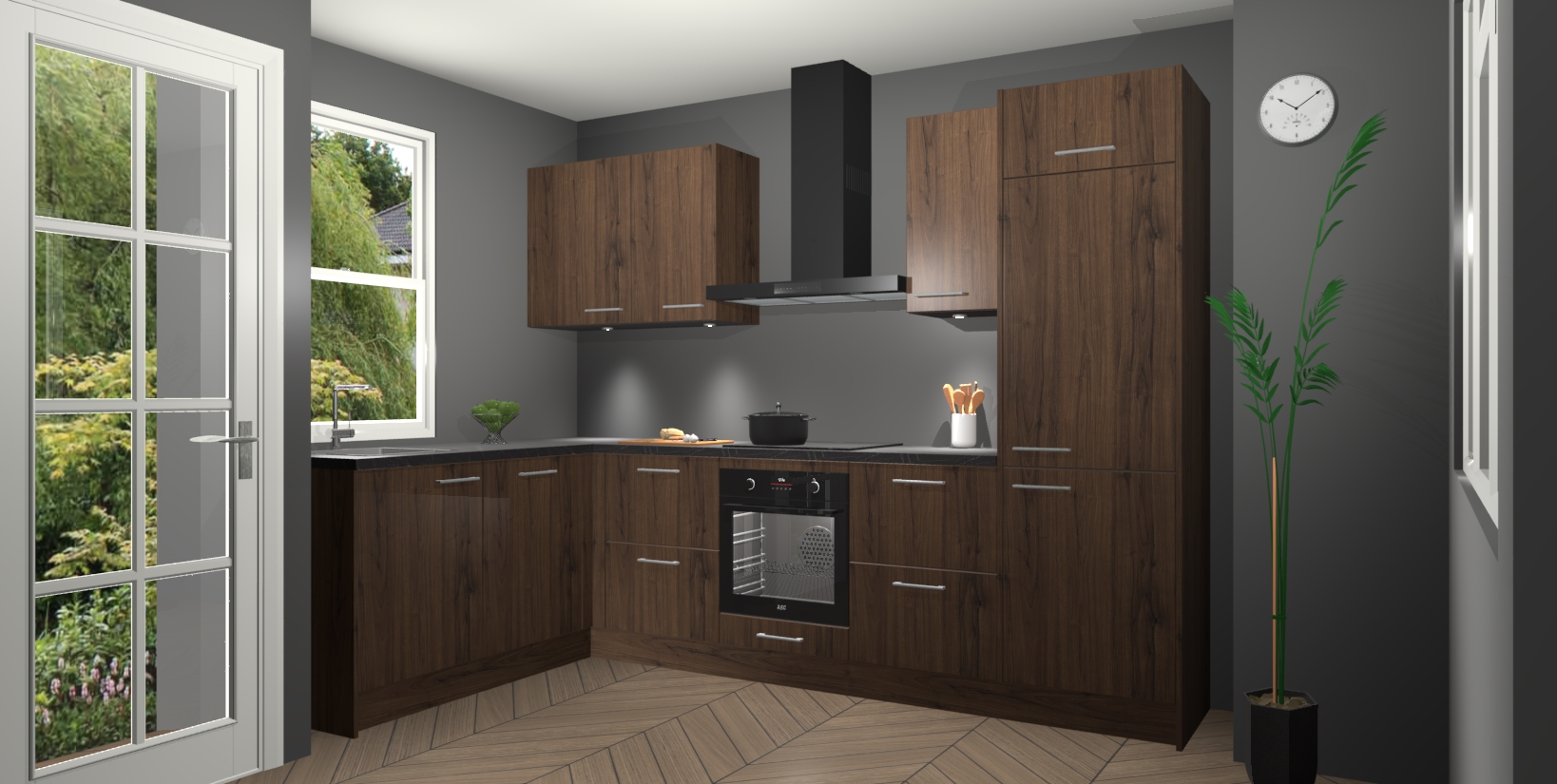 Bent u op zoek naar een strakke, moderne hoekkeuken die uw huis oppept en een moderne uitstraling geeft? Kijk dan niet verder dan de noten keuken Beijing. Deze verbluffende hoekkeuken tilt hedendaags design naar een hoger niveau. Qua stijl is deze chique hoekkeuken voorzien van noten accenten, om een strakke maar opvallende look te creëren. De binnenkant van de kasten is afgewerkt in dezelfde prachtige noten kleur voor extra esthetische aantrekkingskracht.