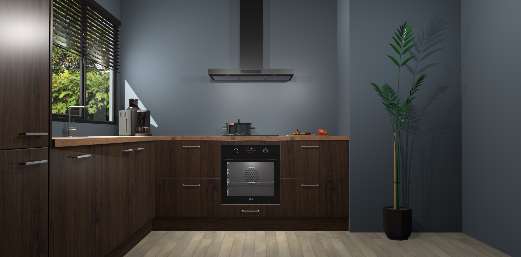 Met een modern, tijdloos design en ruime opslagruimte, zult u zich in no-time thuis voelen in uw nieuwe keuken. Uw leven wordt eenvoudiger met de soft-close deuren die voor het ultieme stille comfort zorgen - geen geluid dat u stoort terwijl u kookt. Ook is de keuken voorzien van 5 ingebouwde apparaten: een oven, inductie kookplaat, afzuigkap, vaatwasser en koelkast. Deze kunnen gemakkelijk na bestelling worden bijgewerkt naar AEG - waardoor uw luxe ervaring compleet is.