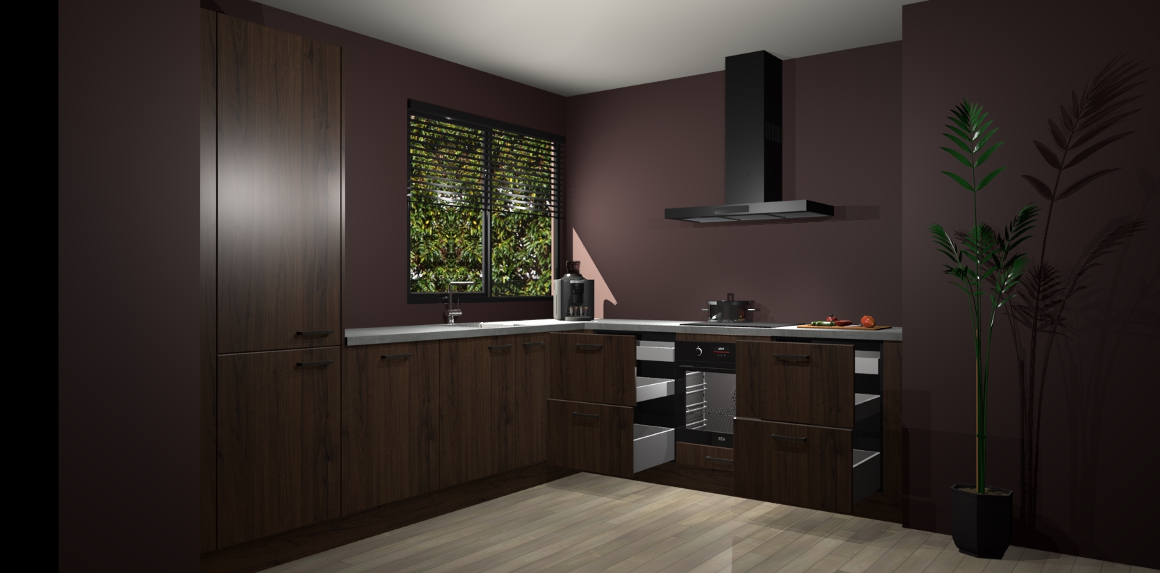 Met een modern, tijdloos design en ruime opslagruimte, zult u zich in no-time thuis voelen in uw nieuwe keuken. Uw leven wordt eenvoudiger met de soft-close deuren die voor het ultieme stille comfort zorgen - geen geluid dat u stoort terwijl u kookt. Ook is de keuken voorzien van 5 ingebouwde apparaten: een oven, inductie kookplaat, afzuigkap, vaatwasser en koelkast. Deze kunnen gemakkelijk na bestelling worden bijgewerkt naar AEG - waardoor uw luxe ervaring compleet is.