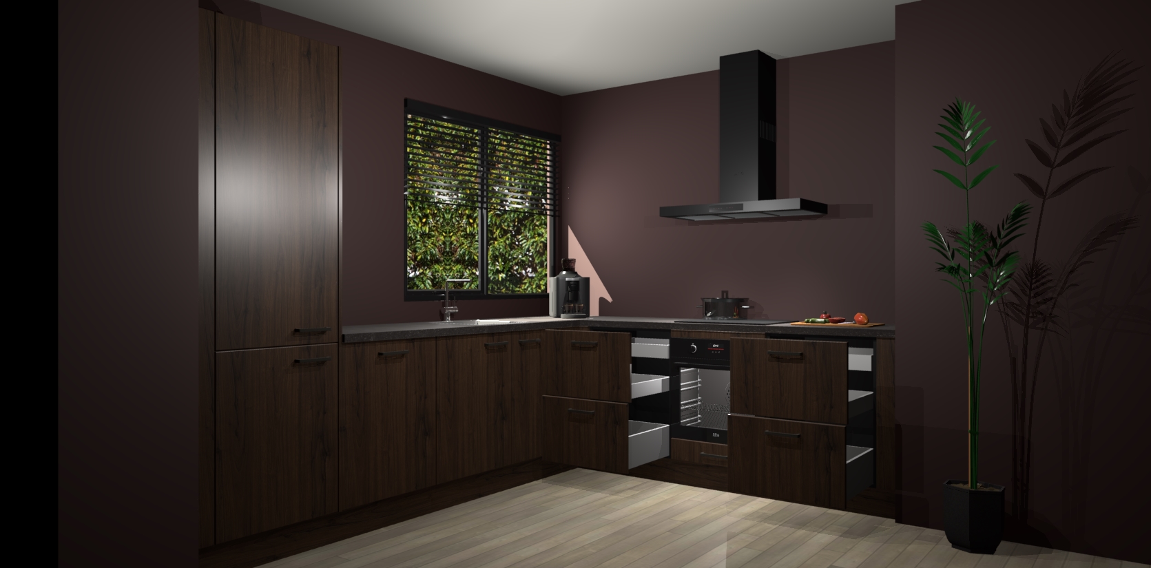 Met een modern, tijdloos design en ruime opslagruimte, zult u zich in no-time thuis voelen in uw nieuwe keuken. Uw leven wordt eenvoudiger met de soft-close deuren die voor het ultieme stille comfort zorgen - geen geluid dat u stoort terwijl u kookt. Ook is de keuken voorzien van 5 ingebouwde apparaten: een oven, inductie kookplaat, afzuigkap, vaatwasser en koelkast. Deze kunnen gemakkelijk na bestelling worden bijgewerkt naar AEG - waardoor uw luxe ervaring compleet is.
