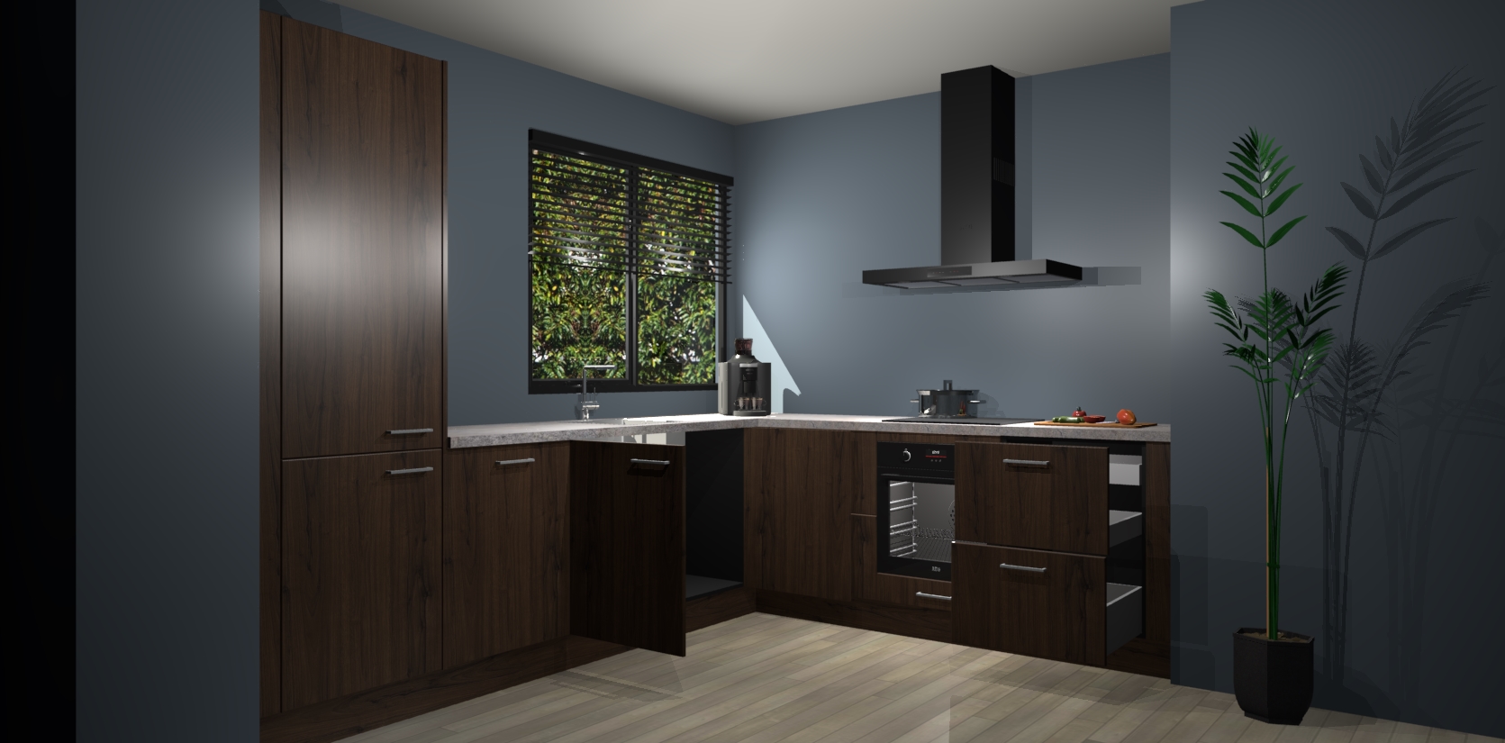 Met een modern, tijdloos design en ruime opslagruimte, zult u zich in no-time thuis voelen in uw nieuwe keuken. Uw leven wordt eenvoudiger met de soft-close deuren die voor het ultieme stille comfort zorgen - geen geluid dat u stoort terwijl u kookt. Ook is de keuken voorzien van 5 ingebouwde apparaten: een oven, inductie kookplaat, afzuigkap, vaatwasser en koelkast. Deze kunnen gemakkelijk na bestelling worden bijgewerkt naar AEG - waardoor uw luxe ervaring compleet is.