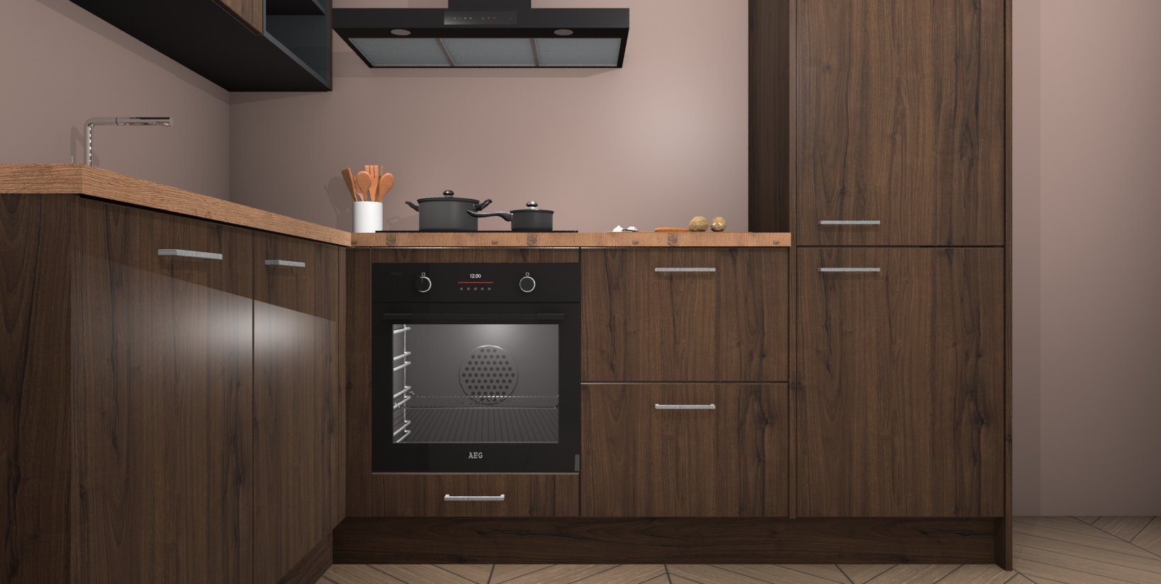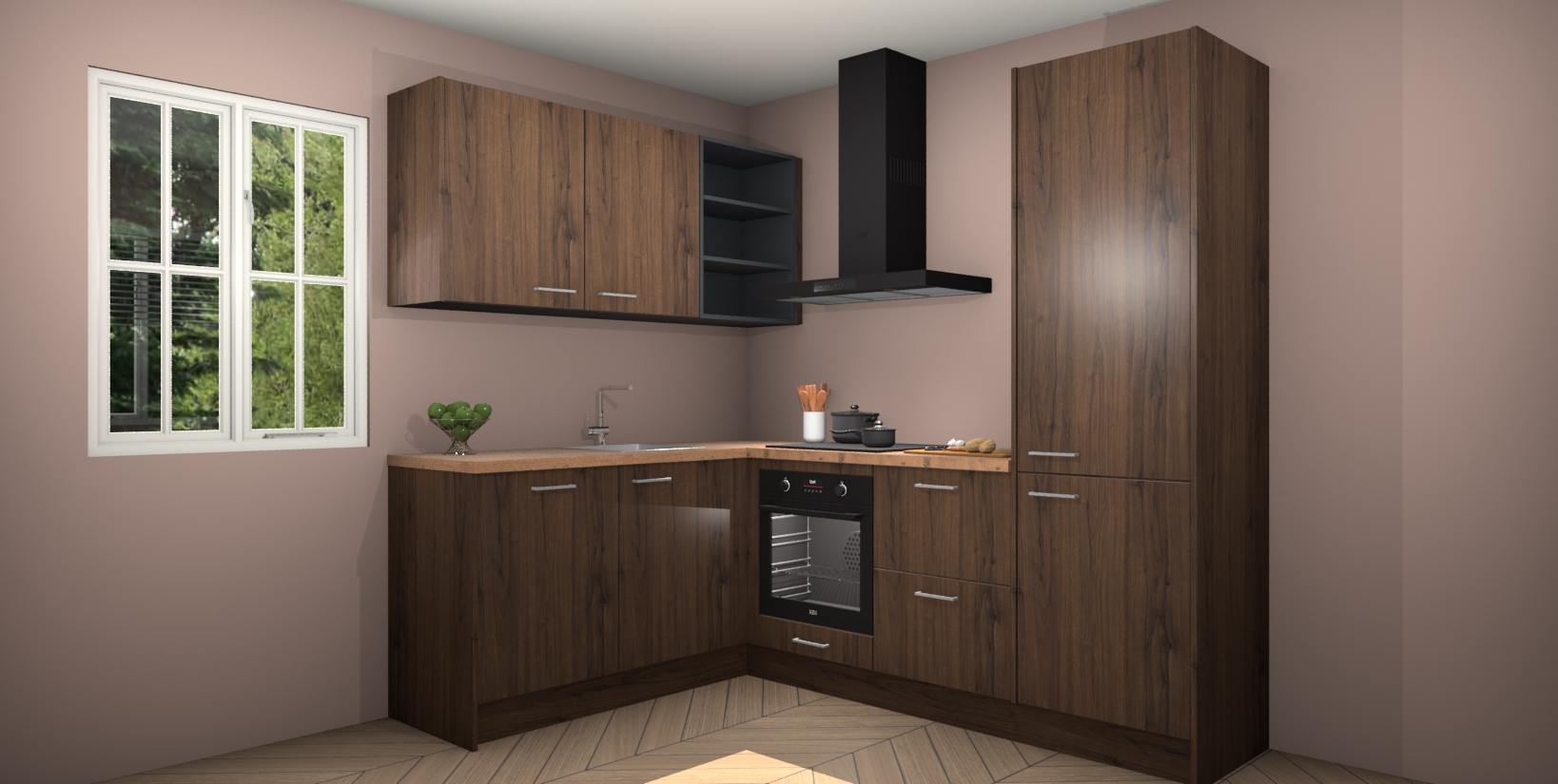 Maak kennis met de Noten keuken Boekarest, een moderne hoekkeuken waar al uw vrienden en familie jaloers op zullen zijn! Het verbluffende mooie ontwerp past in elk interieur en is een ideale keuze voor wie op zoek is naar een klassieke, maar verfijnde look.