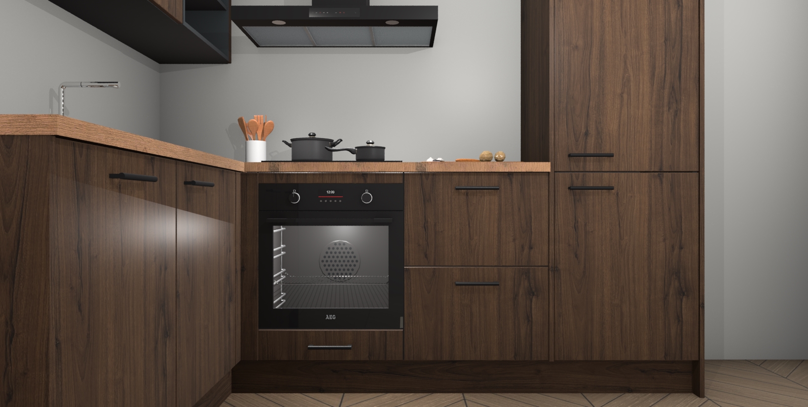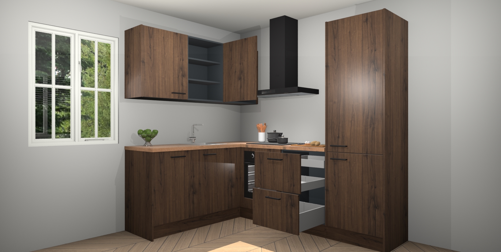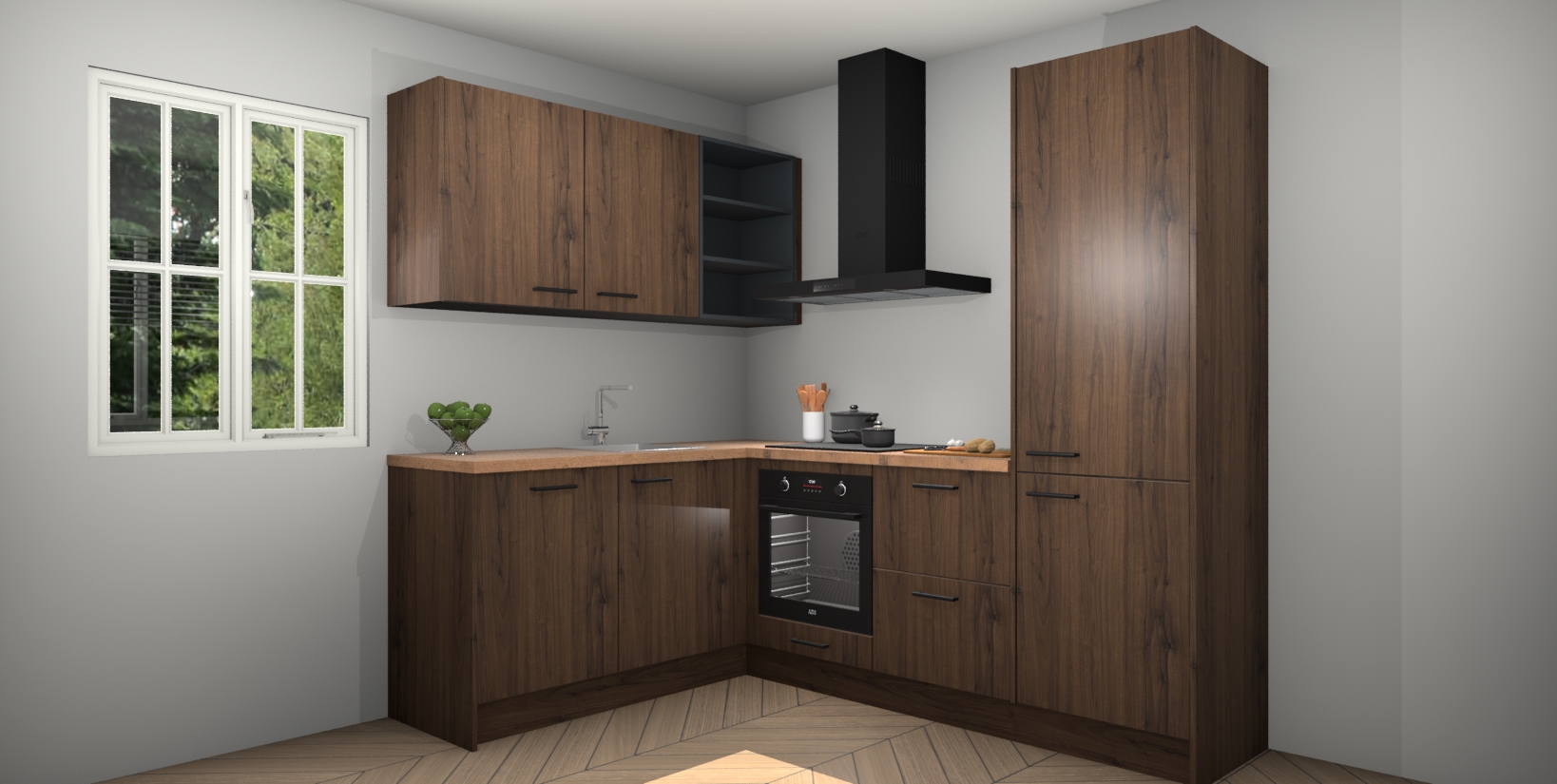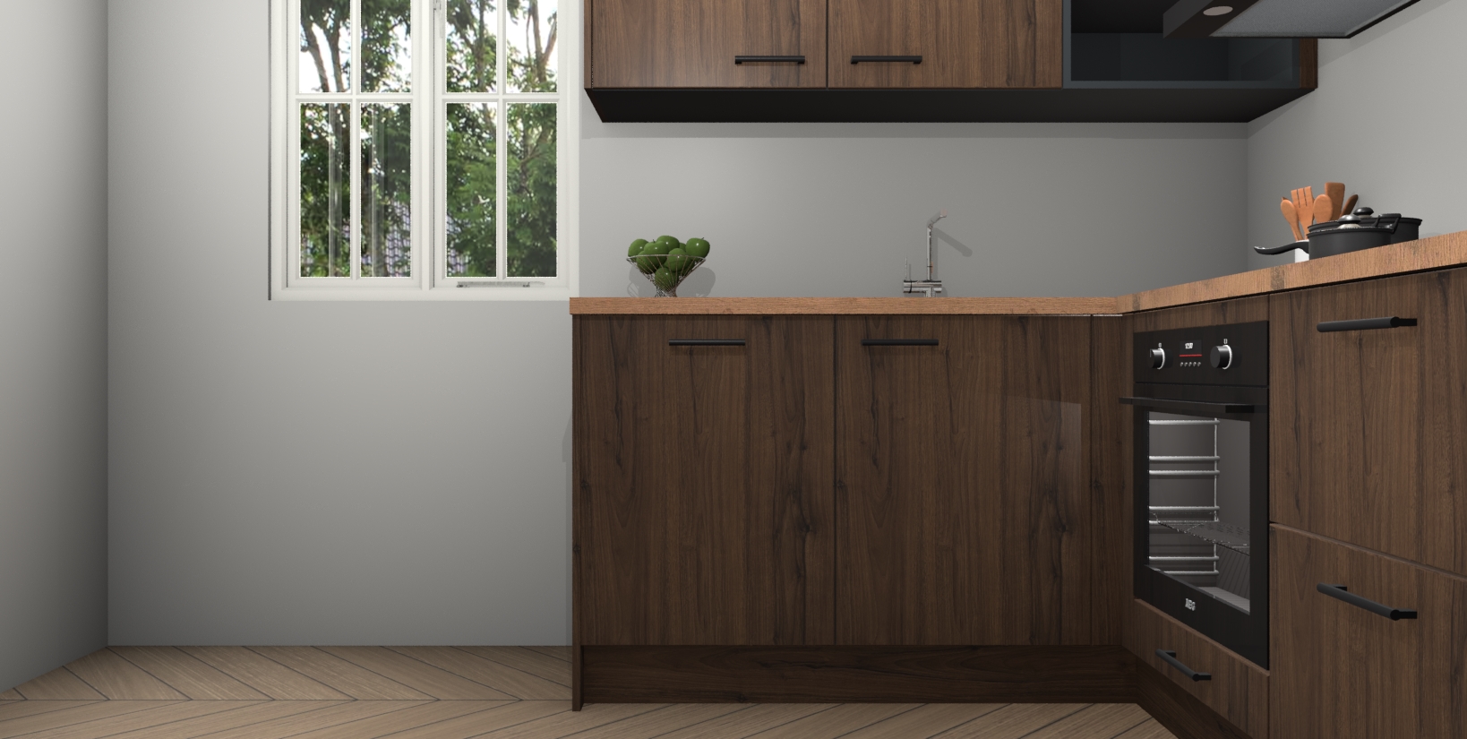 Maak kennis met de Noten keuken Boekarest, een moderne hoekkeuken waar al uw vrienden en familie jaloers op zullen zijn! Het verbluffende mooie ontwerp past in elk interieur en is een ideale keuze voor wie op zoek is naar een klassieke, maar verfijnde look.