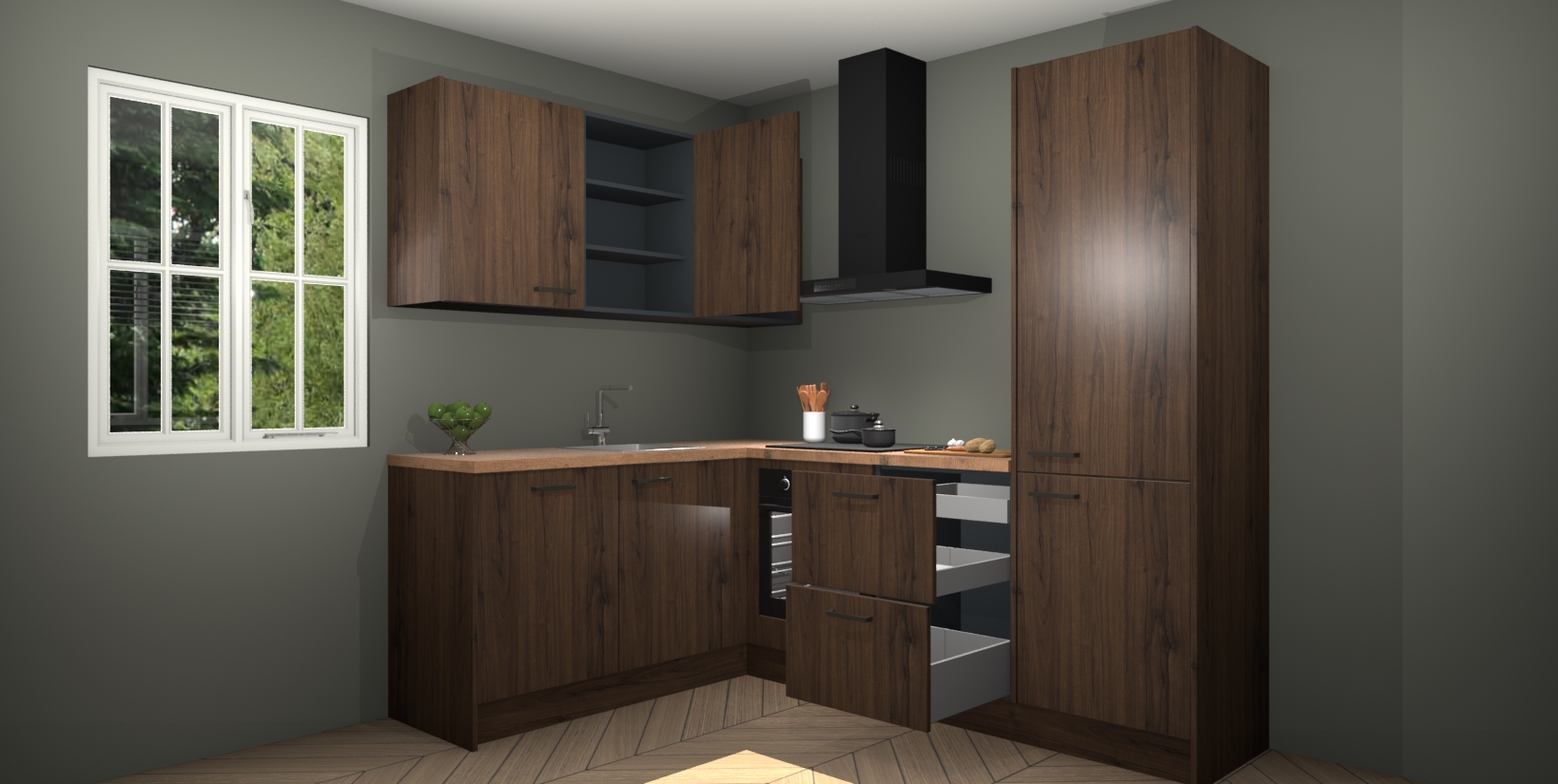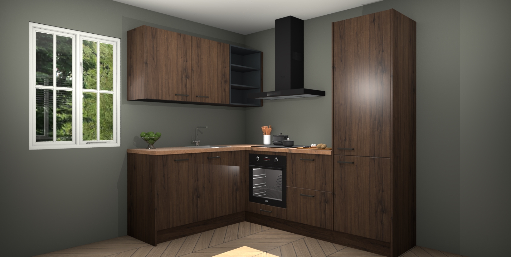 Maak kennis met de Noten keuken Boekarest, een moderne hoekkeuken waar al uw vrienden en familie jaloers op zullen zijn! Het verbluffende mooie ontwerp past in elk interieur en is een ideale keuze voor wie op zoek is naar een klassieke, maar verfijnde look.