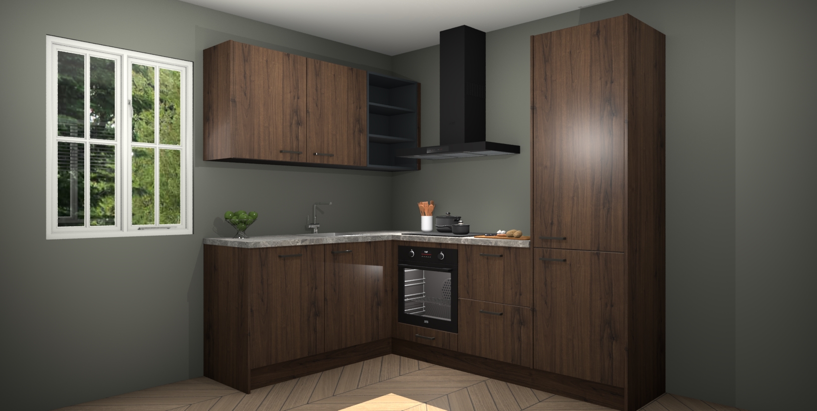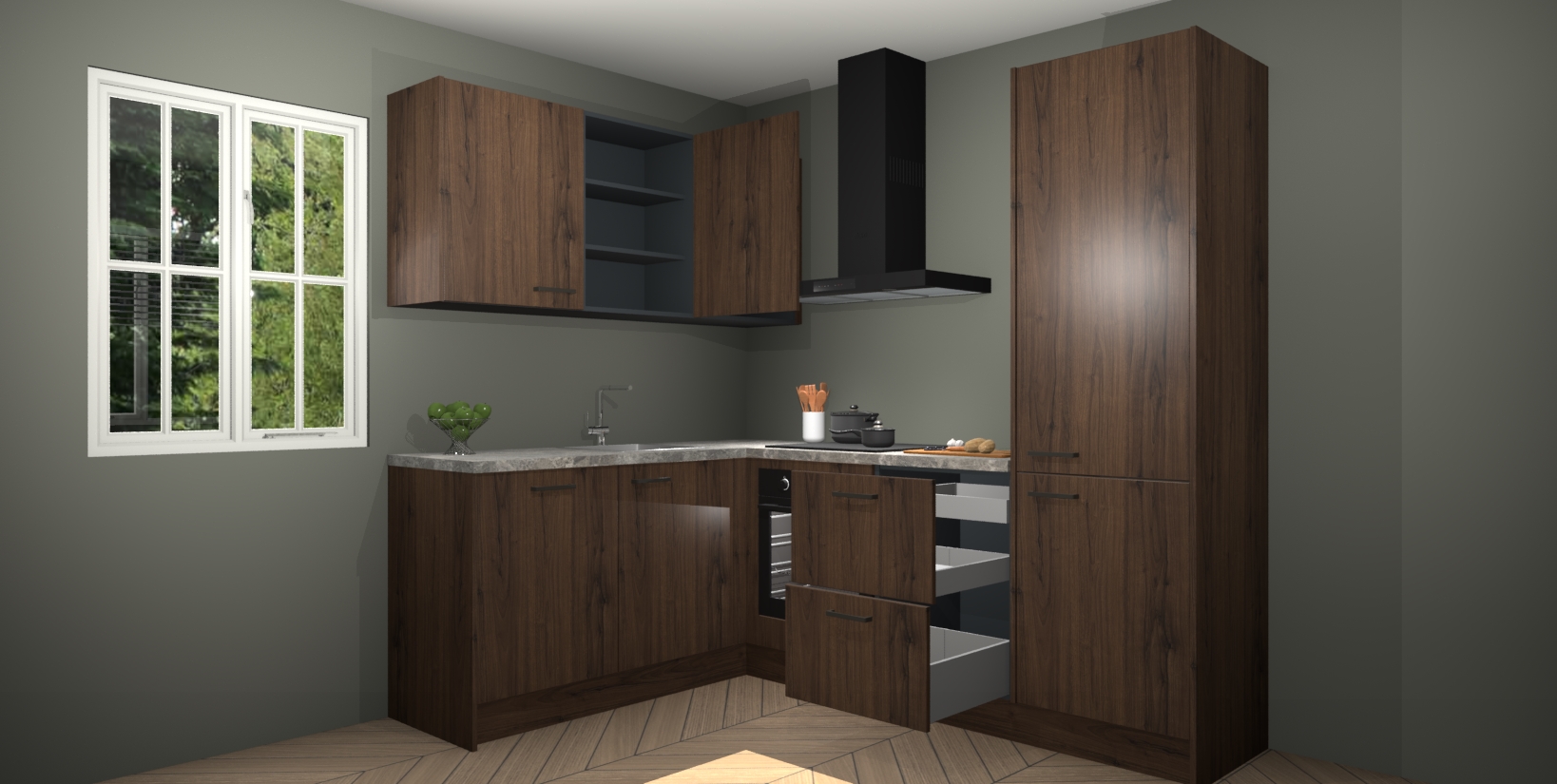 Maak kennis met de Noten keuken Boekarest, een moderne hoekkeuken waar al uw vrienden en familie jaloers op zullen zijn! Het verbluffende mooie ontwerp past in elk interieur en is een ideale keuze voor wie op zoek is naar een klassieke, maar verfijnde look.