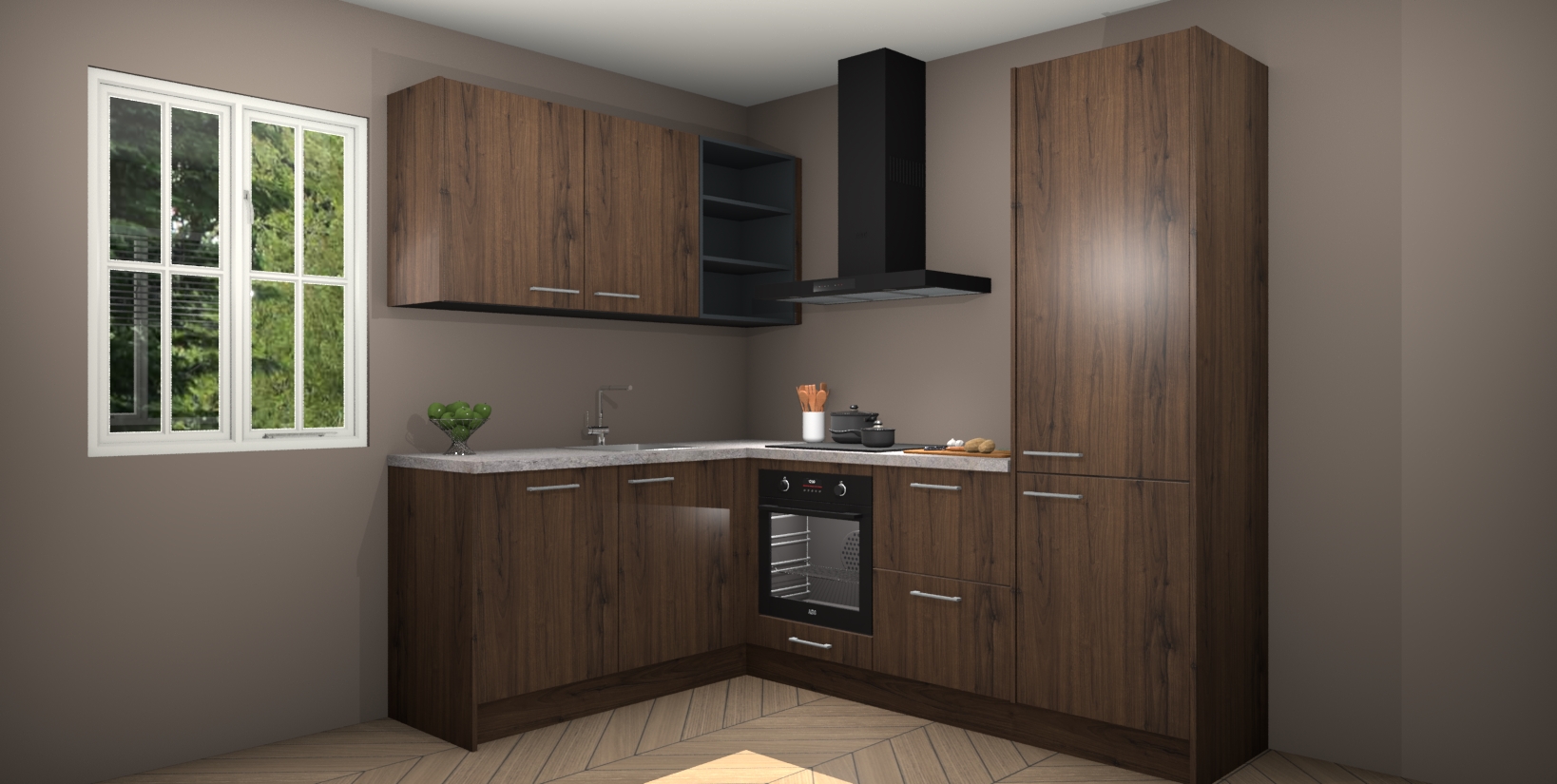 Maak kennis met de Noten keuken Boekarest, een moderne hoekkeuken waar al uw vrienden en familie jaloers op zullen zijn! Het verbluffende mooie ontwerp past in elk interieur en is een ideale keuze voor wie op zoek is naar een klassieke, maar verfijnde look.