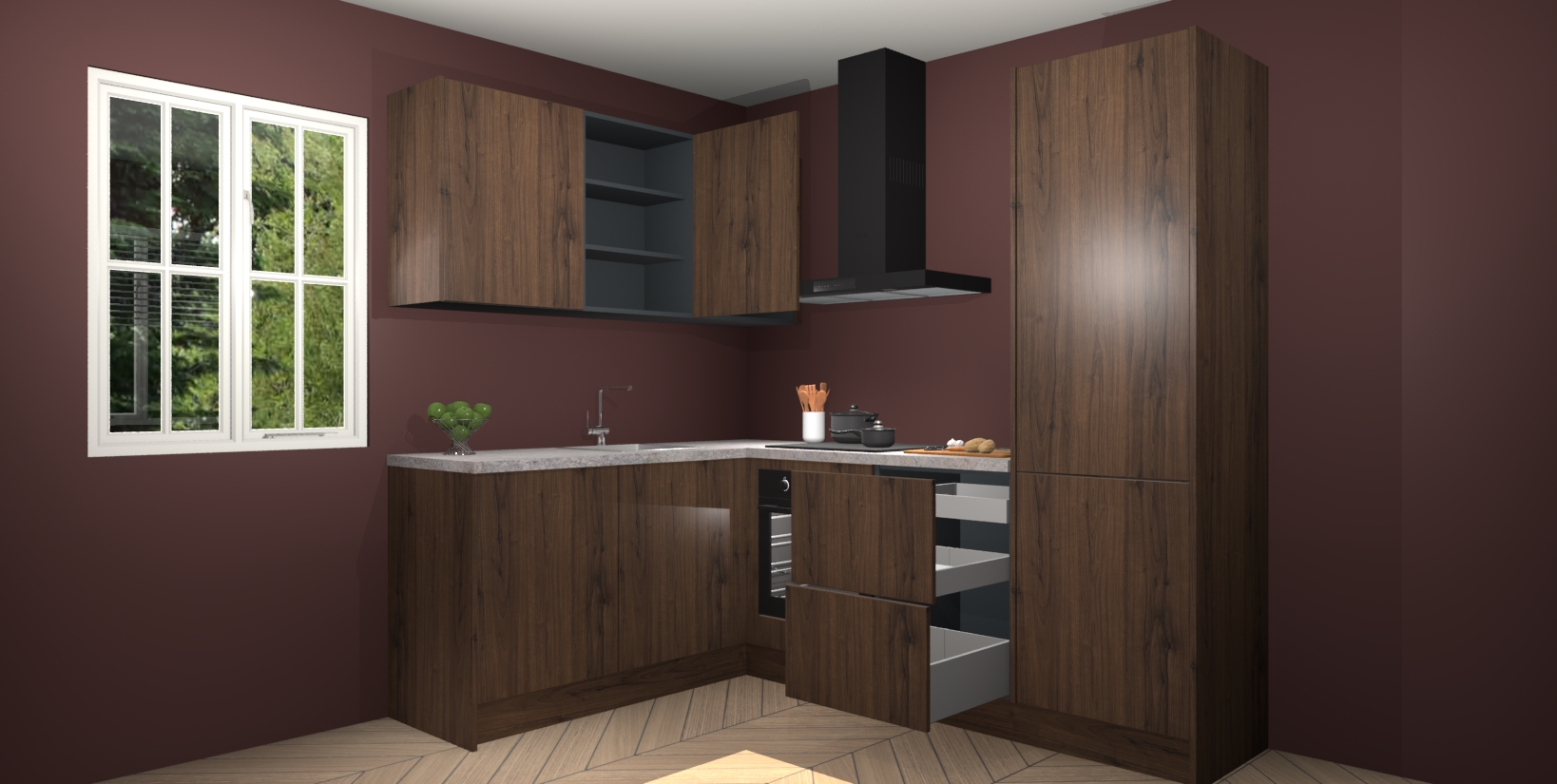 Maak kennis met de Noten keuken Boekarest, een moderne hoekkeuken waar al uw vrienden en familie jaloers op zullen zijn! Het verbluffende mooie ontwerp past in elk interieur en is een ideale keuze voor wie op zoek is naar een klassieke, maar verfijnde look.