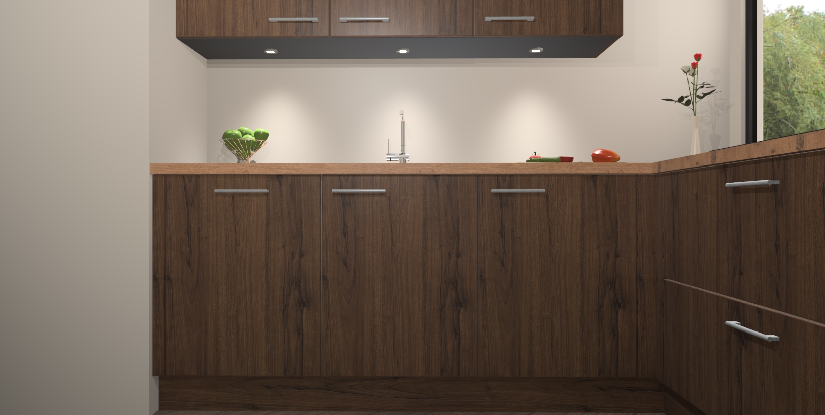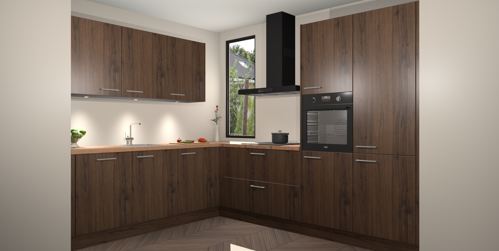 Maak u keuken elegant en verfijnd met de noten keuken Buenos Aires! Dit prachtige stuk heeft warme kleuren voor een strak, modern gevoel dat u de adem zal benemen. De handgrepen heeft net als de binnenkant van de kasten dezelfde noten afwerking, waardoor alles er nog beter uitziet.