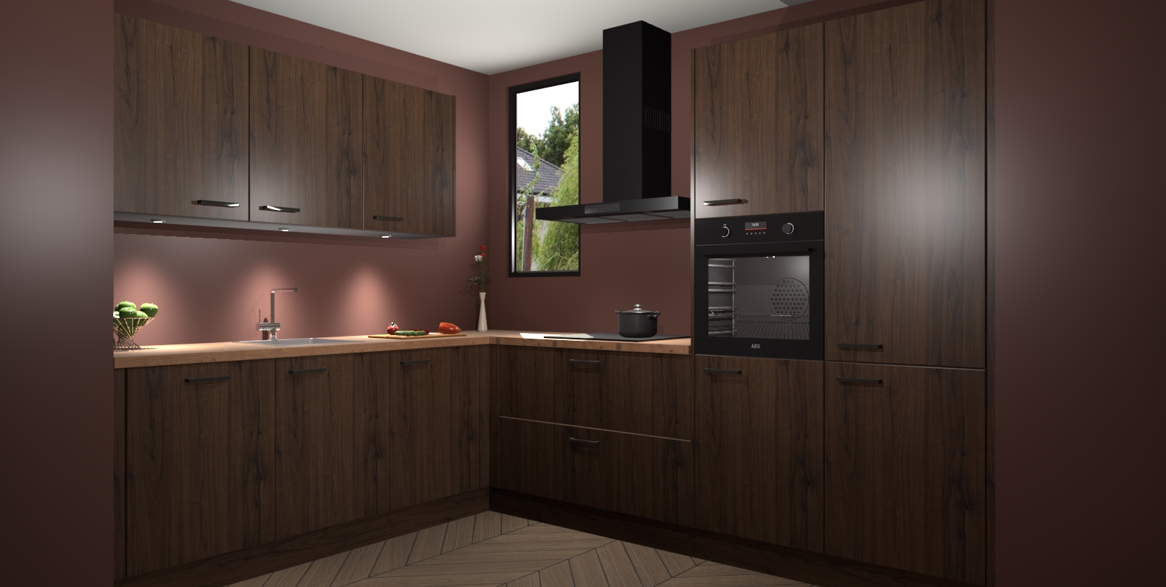 Maak u keuken elegant en verfijnd met de noten keuken Buenos Aires! Dit prachtige stuk heeft warme kleuren voor een strak, modern gevoel dat u de adem zal benemen. De handgrepen heeft net als de binnenkant van de kasten dezelfde noten afwerking, waardoor alles er nog beter uitziet.
