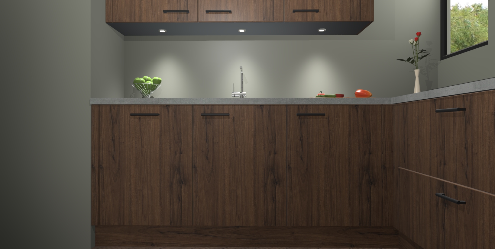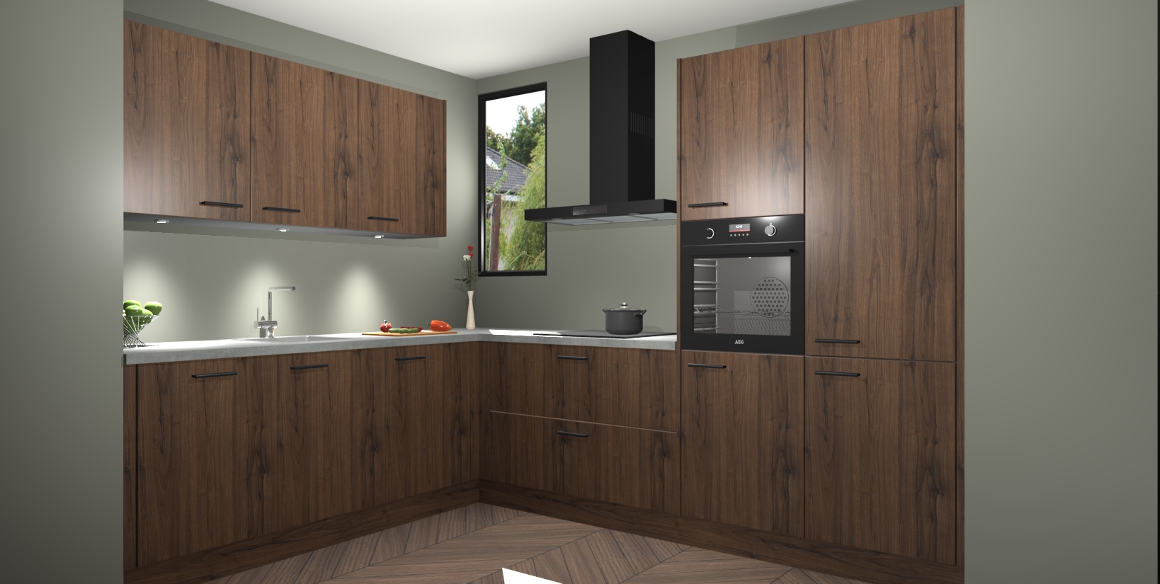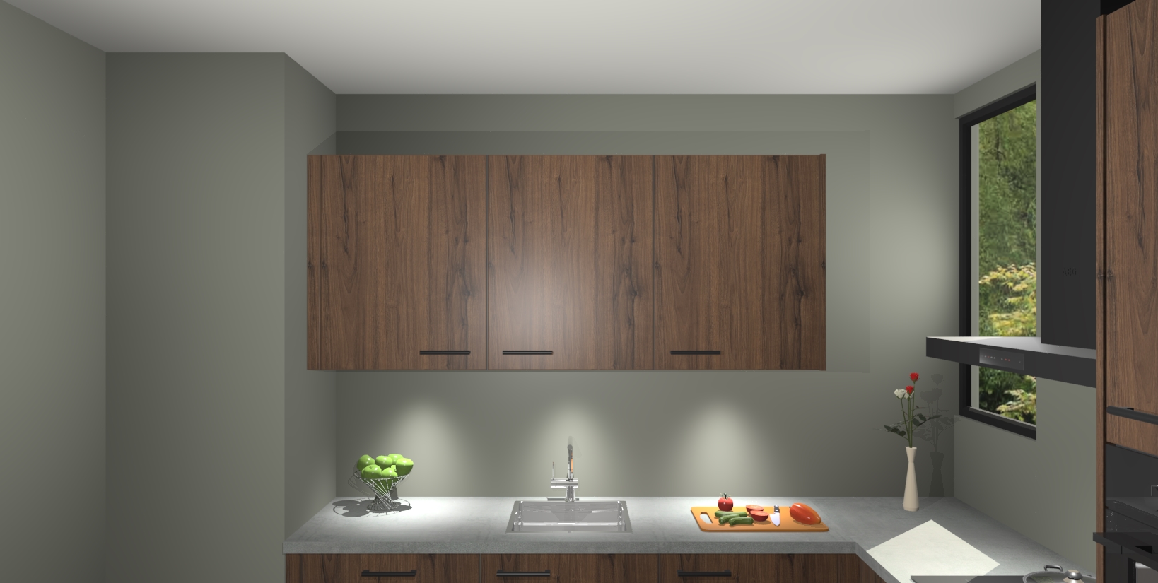 Maak u keuken elegant en verfijnd met de noten keuken Buenos Aires! Dit prachtige stuk heeft warme kleuren voor een strak, modern gevoel dat u de adem zal benemen. De handgrepen heeft net als de binnenkant van de kasten dezelfde noten afwerking, waardoor alles er nog beter uitziet.